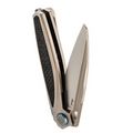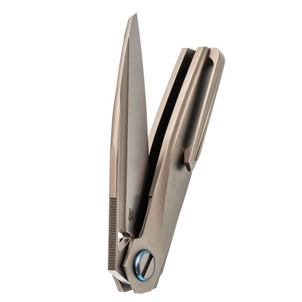 Клинок, выполненный из стали M390, обладает невероятной устойчивостью к образованию коррозии и сохраняет свою остроту на долгое время. Его форма, напоминающая Wharncliffe, лучше всего подходит для точных и деликатность надрезов. Превосходные режущие характеристики формируются за счет высоких прямых спусков и тонкого сведения.