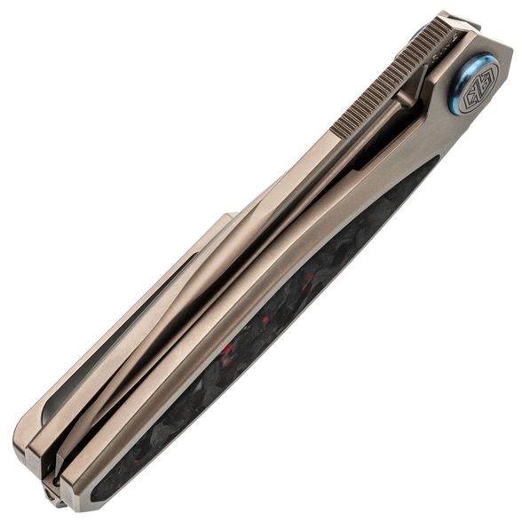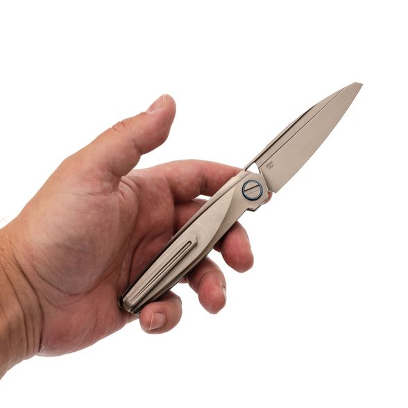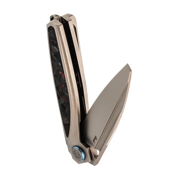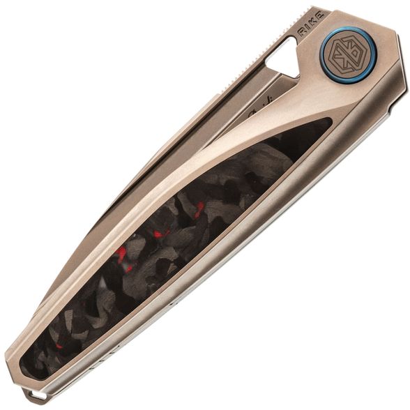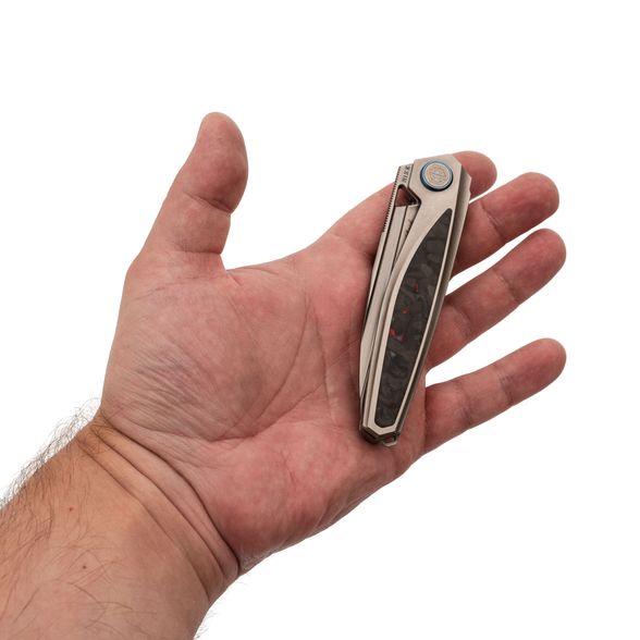 Рукоять Rike Baidi - это сочетание титана и карбона, что обеспечивает невероятную легкость и прочность. Титановая основа делает инструмент легким, а карбоновые вставки придают ему уникальный внешний вид. Плавные линии ручки завораживают и обеспечивают комфортное и безопасное удержание. Еще одна фишка компании Rike - замок Liner-Lock крепится изнутри рукояти на винты. Пускай у него не самая высокая надёжность в классе, её хватит для повседневных задач. Главное преимущество такой конструкции в том, что его легко поменять. За счет этого нож прослужит очень много лет, так как износ можно нивелировать новой запчастью.