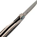 Клинок изготовлен из премиальной порошковой суперстали M390, которая обладает исключительными характеристиками. Высокое сопротивление коррозии и длительное сохранение остроты режущей кромки делают эту сталь идеальным выбором для инструментов высокого класса. Форма клинка также необычна: она напоминает Wharncliffe, что обеспечивает деликатные надрезы и точную работу кончика. Высокие прямые спуски гарантируют отличные режущие характеристики.