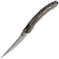 Премиальная порошковая сталь M390 обеспечивает долговечность заточки, высокое сопротивление коррозии и агрессивный рез - отличная сталь для высокопроизводительного ножа. Персидская форма клинка характеризуется внушительным брюшком, которое обеспечивает удобство при нарезании продуктов. Прямые высокие спуски с тонким сведением делают рез идеально ровным и четким. Так же у клинка есть чойл, в который можно положить палец - это прибавляет разнообразия в хваты ножа.