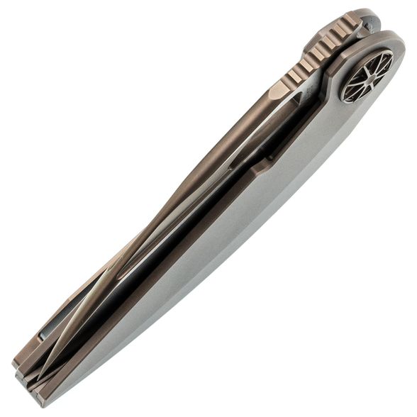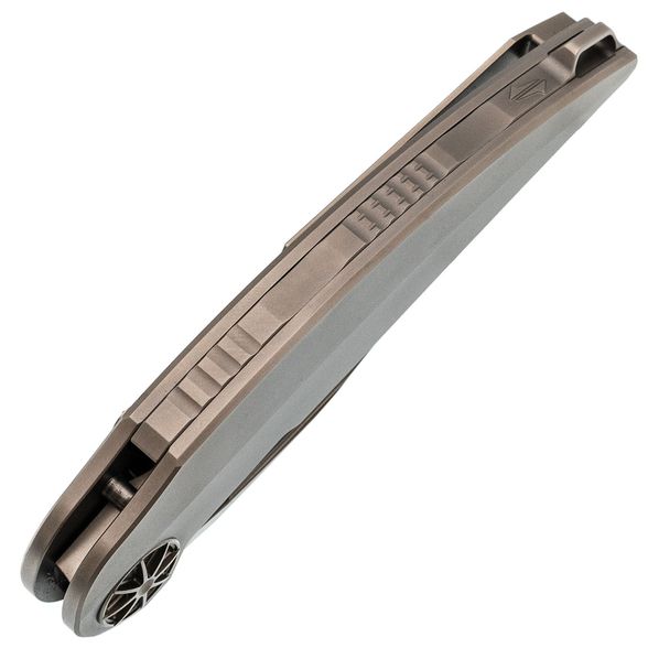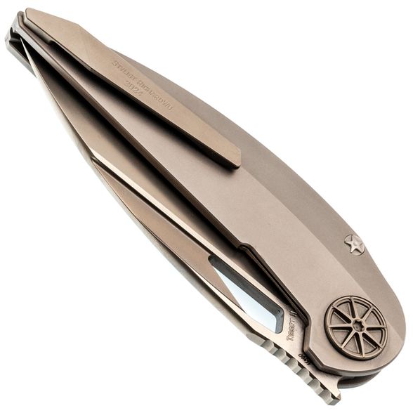 Рукоять Rike Knife Tissot 2 выполнена из титана 6AL4V – сплава, широко применяемого в авиационной и космической промышленности благодаря своей легкости, прочности и устойчивости к коррозии. Эти свойства делают титан идеальным материалом для ножей премиального класса. В дизайне рукояти гармонично интегрировано темлячное отверстие и цельнофрезерованная титановая клипса для удобного ношения на кармане. Одной из ключевых особенностей модели является интегрированный замок Liner-Lock: он крепится изнутри к рукояти, что позволяет легко заменить его при износе, продлевая срок службы ножа.