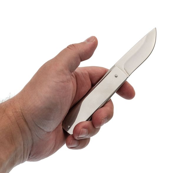 Роял - рамочный складной нож с оригинальной конструкцией. Рукоять изготовлена из полированной нержавеющей стали и надежно фиксирует клинок.