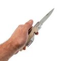 Основной клинок из 8Cr13MoV создана для чистого реза продуктов - прямые спуски и тонкий обух дают аккуратный рез без лишнего усилия. Малый клинок выручает в мелких задачах: подрезать верёвку, вскрыть упаковку, подправить стружку. Благодаря такой паре инструментов удобно и готовить, и поддерживать порядок на стоянке.