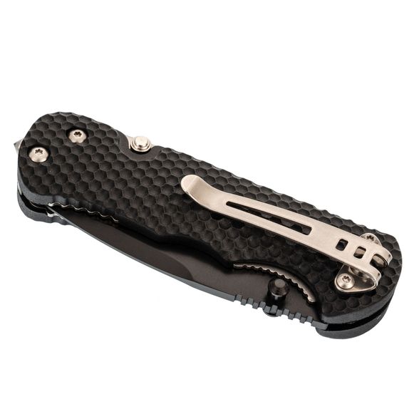 Форма рукояти у 7045LUI-PH-T4 лаконична и продумана: её удобно держать как в перчатках, так и голой рукой. Цепкая текстура пластиковых накладок надёжно фиксирует нож в ладони даже во влажных условиях. В конструкции предусмотрен надёжный замок Liner-Lock, который исключает случайное складывание клинка при работе.
