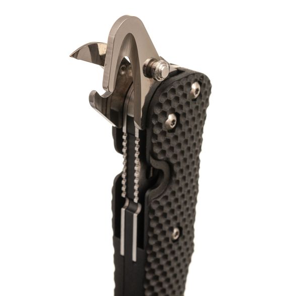 Остро заточенный вспомогательный резец предназначен для быстрого и безопасного разрезания шнуров, ремней, стяжек и упаковок. Он удобен для ситуаций, когда нужно выполнить рез без полного открытия основного клинка - это быстрее, безопаснее и пудобнее.