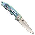 Нож оснащён клинком из нержавеющей стали 12C27, которая известна балансом между твёрдостью, коррозионной стойкостью и лёгкостью заточки. Форма Drop-Point с прямыми высокими спусками обеспечивает чистый и аккуратный рез. Лезвие уверенно справляется с упаковкой, продуктами, деревом, тканями и другими материалами.