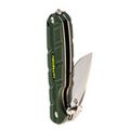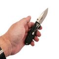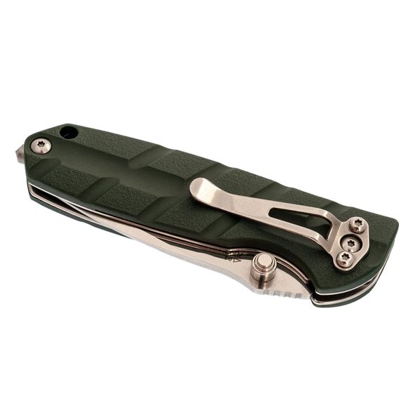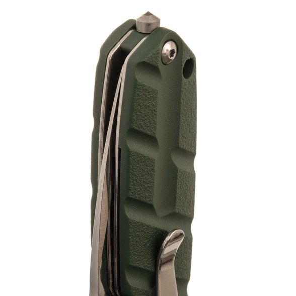 Нож оснащён замком Liner-lock - простым и надёжным механизмом фиксации клинка в рабочем положении. В торце рукоятки расположен стеклобой, который пригодится в экстренных ситуациях. Он также может использоваться как тактический элемент, расширяя функционал ножа за пределами стандартного применения.