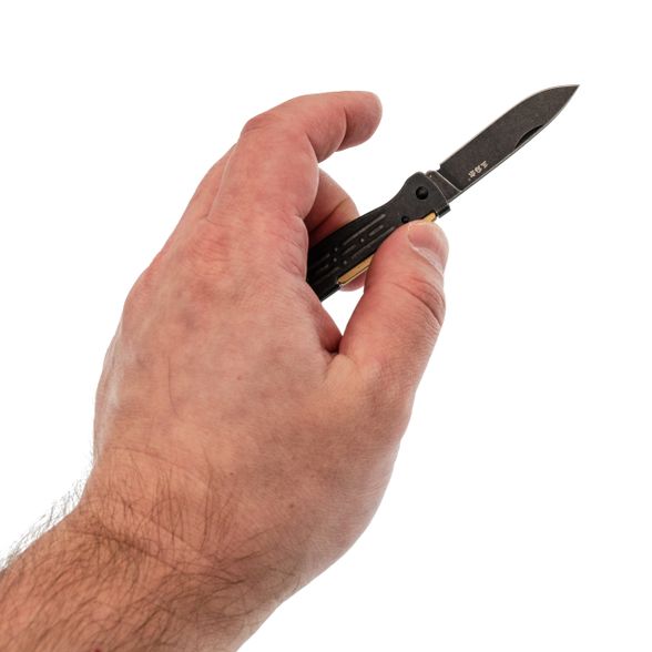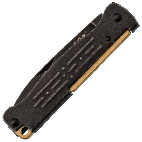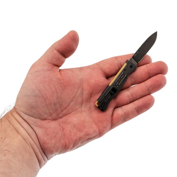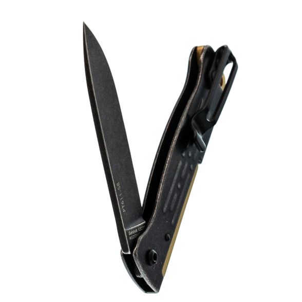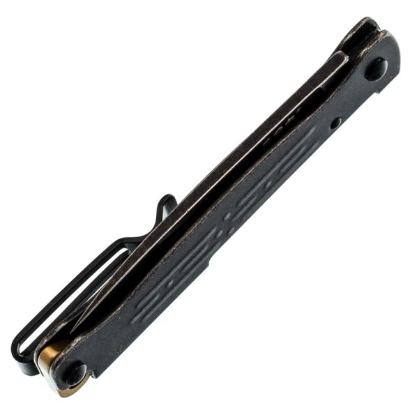 Тонкая рукоять из листовой стали поначалу кажется необычной, но в носке это плюс. Она не оттопыривает карман и не давит на ногу. Замок Slip-Joint здесь настроен с хорошим усилием: пружина тугая, и в открытом положении клинок держится мертво для всех бытовых сценариев. Клипса вынесена так, чтобы нож сидел глубоко в кармане и не цеплялся за подкладку куртки при ходьбе.