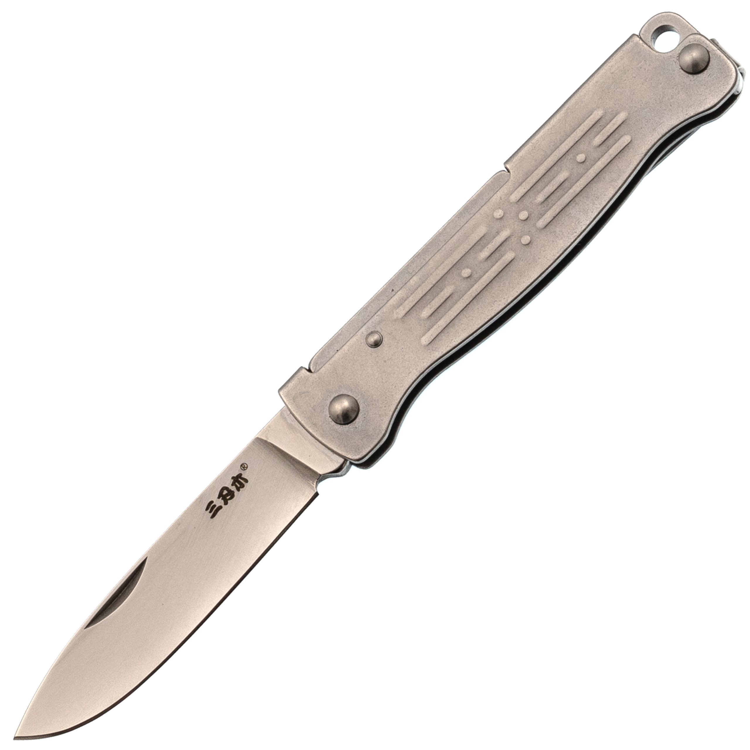 - Рукоять из стали 420: Нержавеющая сталь в рукояти гарантирует, что нож не разболтается через месяц использования. Этот материал выбран за жесткость и долговечность. Он не боится влаги, перепадов температур и спокойно переживет падение с ключами в кармане. Рукоять здесь выполняет функцию несущей конструкции - просто, прочно и на годы.