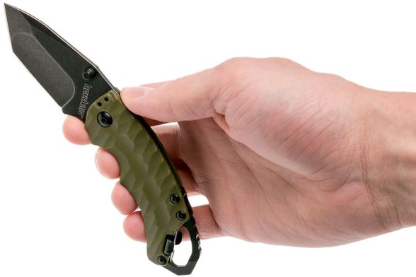 Многофункциональный складной нож Shuffle II от американского бренда Kershaw - одна из наиболее популярных моделей складников для повседневного ношения. Клинок в форме "танто" выполнен из нержавеющей стали 8Cr13MOV с обработкой BlackWash, которая служит защитой от царапин. Рукоять эргономичной формы изготовлена из термопластика оливкового цвета, на котором имеются текстурированные элементы. Материал имеет хорошую стойкость к ударным нагрузкам, не выгорает и не боится влаги. Хорошая цепкость хвата также обеспечивается наличием подпальцевых выемок. Собрана рукоятка на стальных лайнерах. Переставную клипсу можно установить в удобное положение как для левши, так и для правши. Механизм открытия - двусторонние шпеньки.