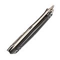 Клинок выполнен из стали D2 - высокоуглеродистая инструментальная, характеризующаяся долгим удержанием заточки (дольше чем большинство сталей в бюджетном и даже среднем ценовом сегменте) и агрессивным резом. Эти свойства отлично дополняют Сканди спуски - главное преимущества которых это удобство работы с деревом и рыбой. Остальные задачи они уже будут выполнять хуже других видов спусков, но удовлетворительно. Клинок имеет длину 125 мм - отличная длина для туристического ножа, не слишком большой, не слишком маленький - в самый раз. В общем клинок делает этот нож отличным выбором в качестве туристического ножа.