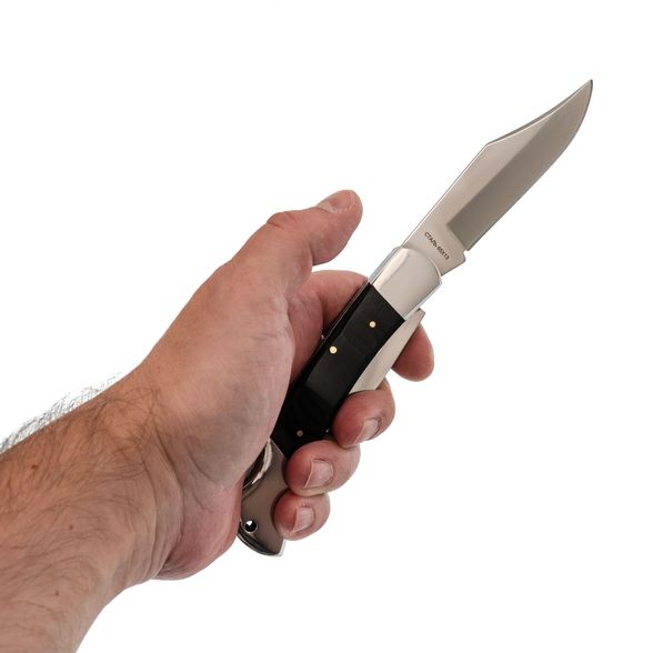 Клинок имеет классический Clip-Point профиль, который идеально подходит для резки и разделки. Спуски от середины клинка обеспечивают отличную прочность, что делает его подходящим для разнообразных задач. Дол на клинке помогает легко открывать инструмент одной рукой, а его хищный вид придаёт ножу особенный характер.