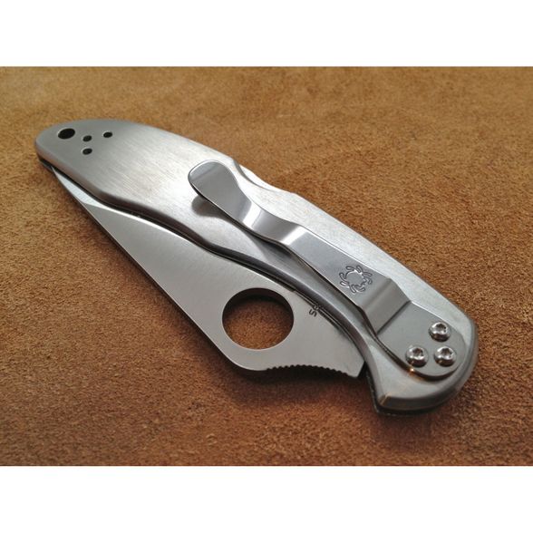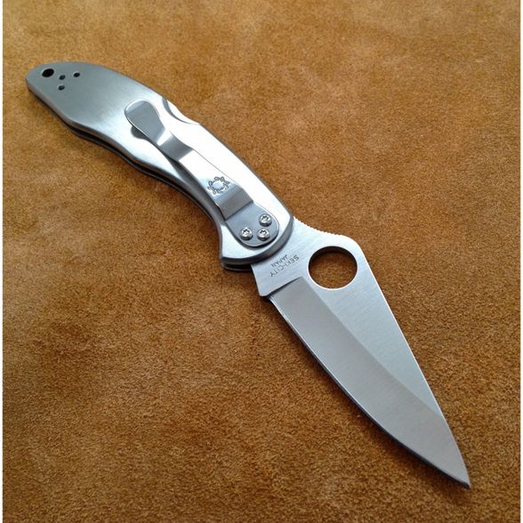 Складной нож SPYDERCO DELICA 4 понравится ценителям стиля хайтек и любителям высоко технологичных гаджетов. Клинок и рукоять ножа полностью выполнены из стали, что придает ножу стильный и футуристический вид. Нож отлично подходит для использования в городских условиях — компактные размеры и небольшой вес позволяют постоянно носить его с собой. Нож практически не ощущается в кармане. Среди удобств стоит отметить круглое отверстие на клинке для однорукого открывания и жесткую клипсу для крепления ножа к краю кармана.