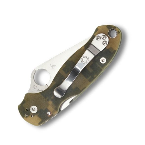Нож Spyderco Para 3 Camo - берёт все проверенные особенности и преимущества бестселлера Spyderco Para Military 2, и воплощает их в ещё более компактном универсальном режущем инструменте, которому предначертано стать классикой! Его трёх дюймовое лезвие с прямыми от обуха спусками и фирменным круглым отверстием "Spyderco Round Hole", изготовлено из нержавеющей порошковой стали CPM S30V производства Американской компании Crucible Industries. Эргономичная рукоять, основанная на скелетезированных лайнерах из нержавеющей стали, выполнена из текстурированного G-10. Патентованный замок Compression Lock, расположенный в позвоночнике рукояти, обеспечивает надёжную фиксацию лезвия, позволяя легко открывать и закрывать нож одной рукой. Четырёхпозиционная карманная клипса, широкое трубчатое отверстия для темляка. Несмотря на то, что нож Para3 основан на Paramilitary 2, в действительности он не является Paramilitary 3. Его меньший размер характеризует его, как отдельную модель серии, а номер 3 в его названии, на самом деле означает длину лезвия – 3 дюйма.
