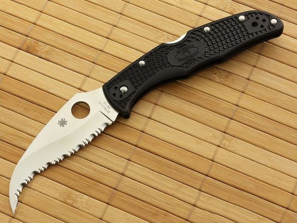 Форма клинка этого ножа производит неизгладимое впечатление на любого коллекционера ножей. Изогнутое лезвие со злым серрейтором обеспечивает уверенный рез синтетических шнуров и канатов. Несмотря на форму клинка, нож отлично справляется с типичными повседневными задачами: обрезание ниток, вскрытие упаковок и приготовление бутербродов. Рукоять ножа оснащена особым типом рифления, который обеспечивает уверенное удержание ножа даже мокрой рукой.