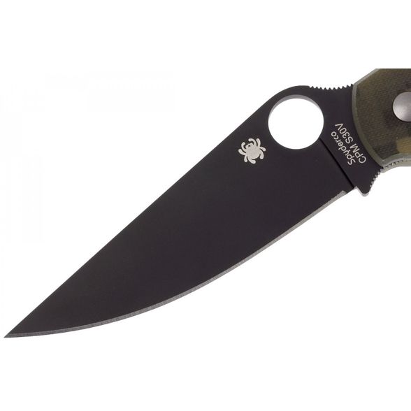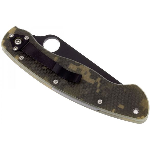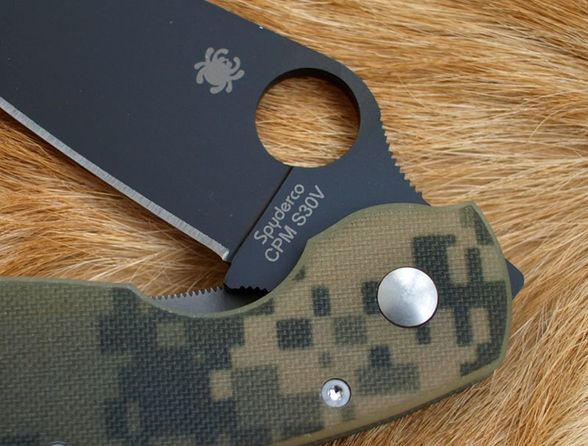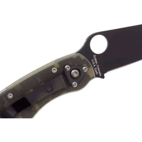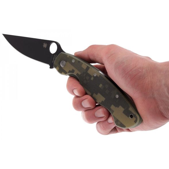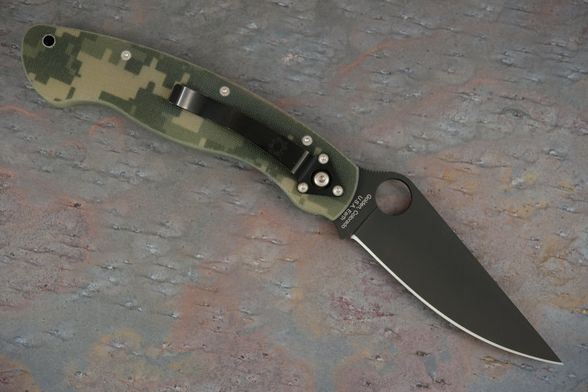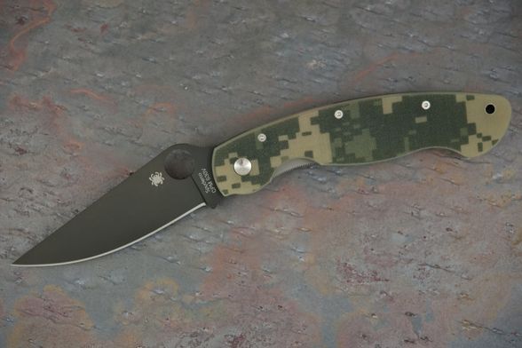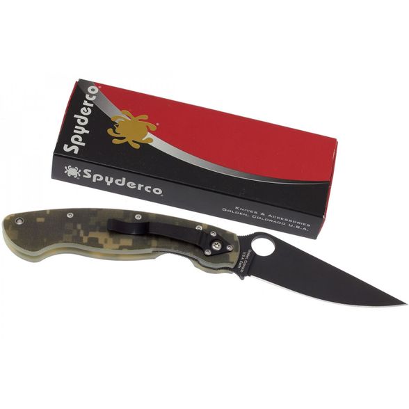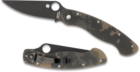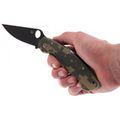 Складной нож SPYDERCO MILITARY CAMO BLACK станет незаменимым помощником на охоте, рыбалке или в туристическом походе. Для комфортного использования в полевых условиях, нож оснащен камуфлированными накладками. На клинке размещено специальное матовое покрытие, которое не дает бликов и защищает клинок от контактов с агрессивными средами. Благодаря продуманной форме рукояти нож уверенно удерживается большой и маленькой ладонью. Высокие спуски обеспечивают точный и хорошо контролируемый рез.