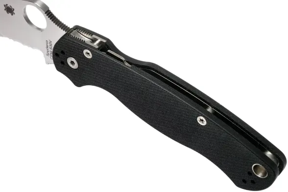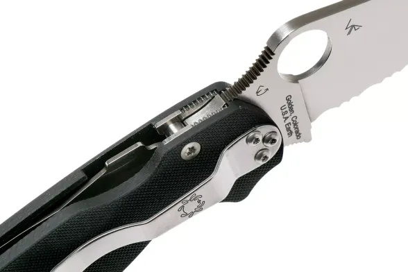 Одна из ключевых особенностей Spyderco Paramilitary 2 - это его уникальный замок Compression-Lock, который является собственной разработкой компании Spyderco. Этот замок не только отличается высокой надёжностью, но и закрывается одной рукой не подставляя пальцы под клинок. Compression-Lock работает с помощью боковой пластины давящей на клинок в открытом положении и сжимается при закрывании, обеспечивая безопасную и надёжную фиксацию. Такая конструкция замка также позволяет инерционно извлекать клинок, что является ещё одним преимуществом для быстрого развертывания.