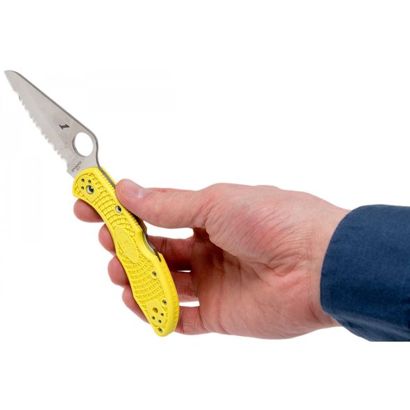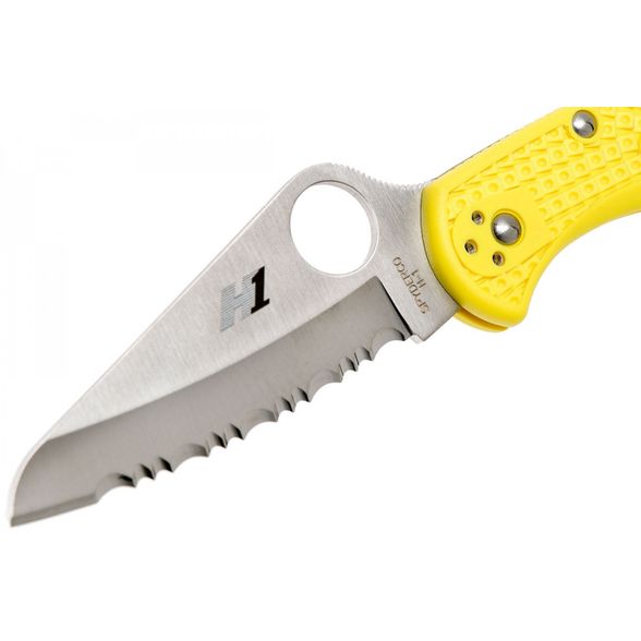 Складной нож Salt 2 - Spyderco C88SYL2, сталь H1 Satin Serrated - имеет желтую рукоять из FRN и лезвие из нержавеющей стали H-1 с полностью зазубренной режущей кромкой. В ноже Salt 2 от Spyderco использованы передовые функции популярной модели Delica 4 и добавлена сталь H-1 из серии Salt, чтобы создать антикоррозийную мечту EDC. Рукоятка из FRN с двунаправленным текстурированием и высокопрочным механизмом блокировки спинки обеспечивает надежную фиксацию лезвия и уверенный хват. Четырехпозиционная титановая карманная клипса обеспечивает удобное ношение в кармане.