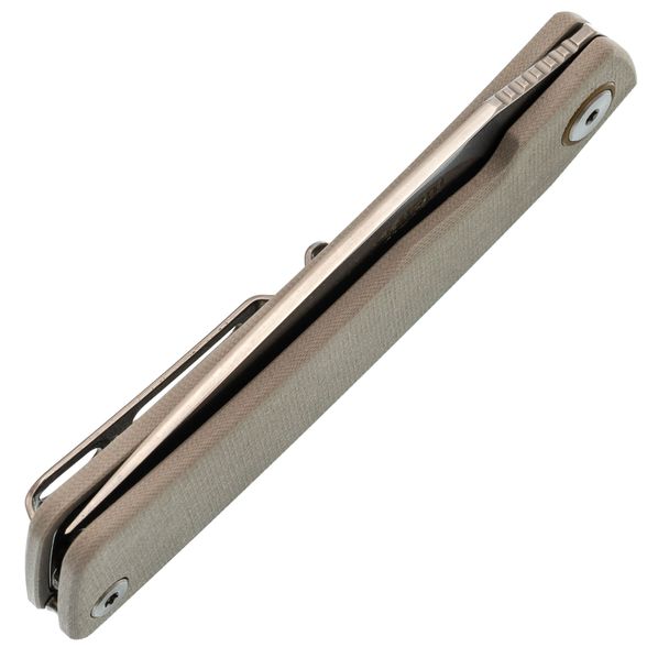 Клинок: сталь 14C28N с черным покрытием. Это высококачественная сталь, устойчивая к коррозии и износу. Черное покрытие придает клинку стильный и аккуратный внешний вид, улучшая его стойкость к повреждениям и воздействию внешней среды.