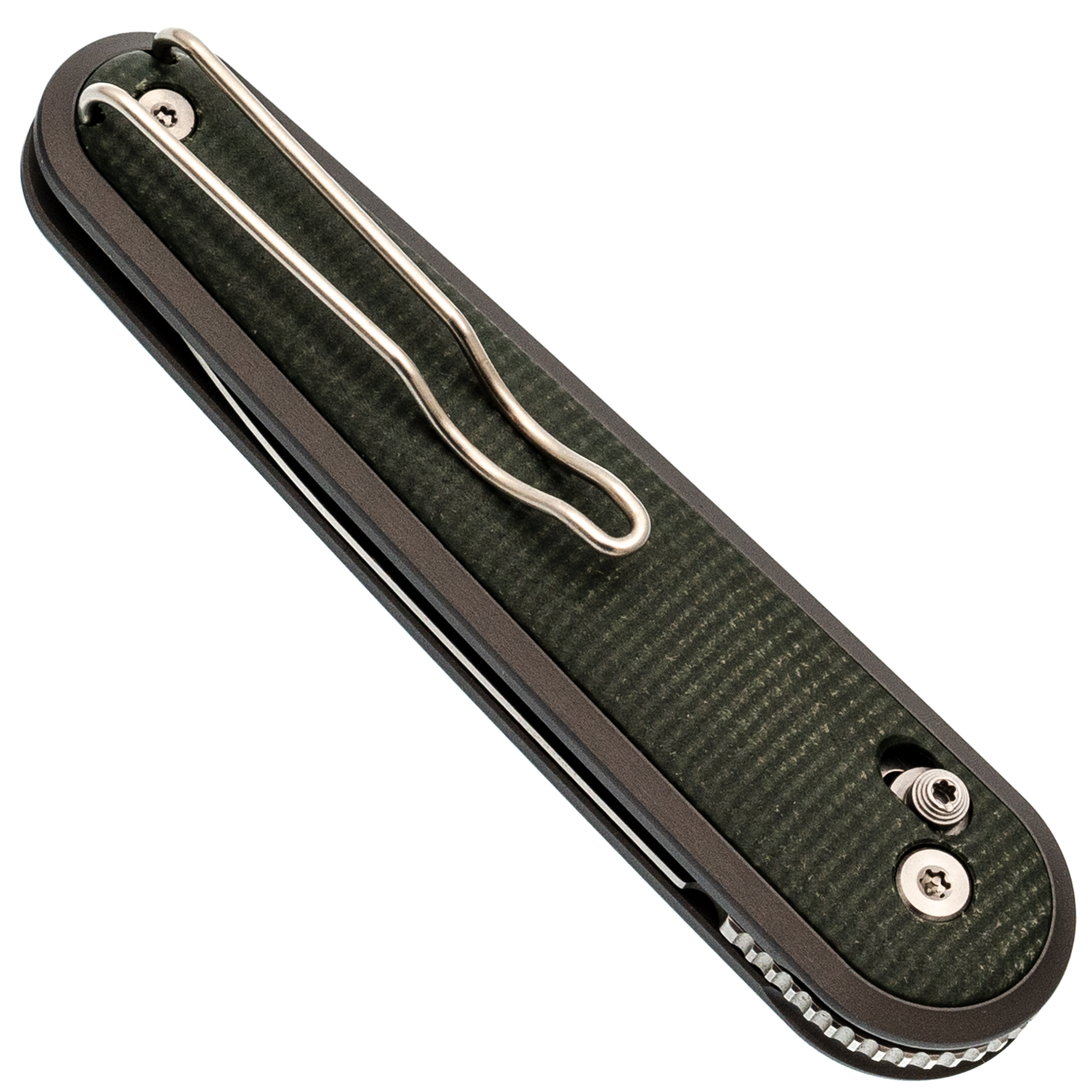 Рукоять анатомически выверена, хотя внешне кажется строгой и геометричной. За счёт симметричной формы нож одинаково удобно держать как прямым, так и обратнымм хватом. Замок ambi-lock - это проверенная конструкция подпружиненным штифтом. Подходит для любого типа рук, не требует усилий при фиксации и позволяет открывать нож не только классическим способом, но и инерционным движением, если потянуть за штифт. Проволочная клипса съёмная и может переставляться на другую сторону. Её главное преимущество - компактность и ненавязчивость. Нож не торчит из кармана как топор, не натирает ладонь при работе и не цепляется за одежду при резких движениях.