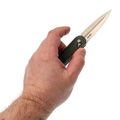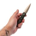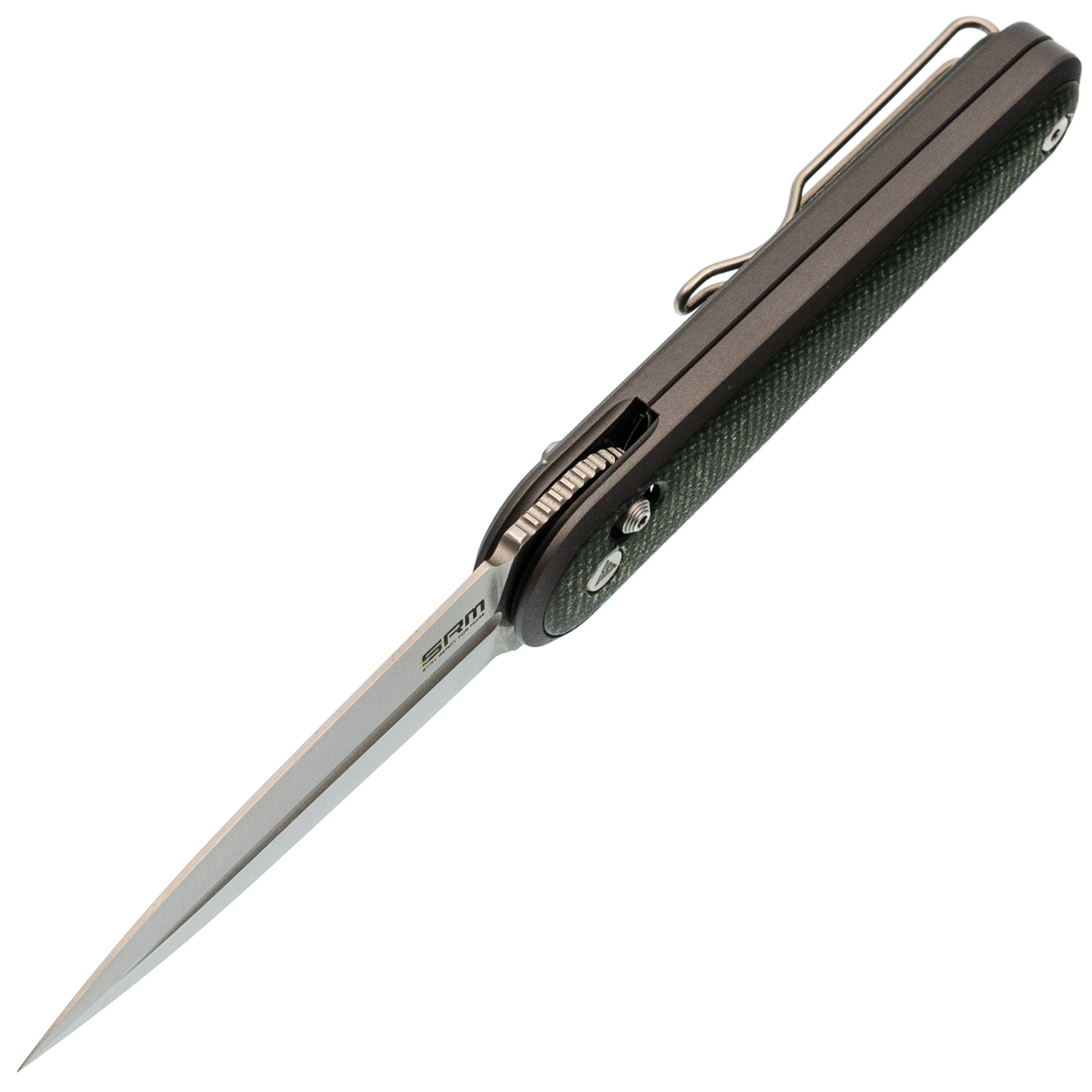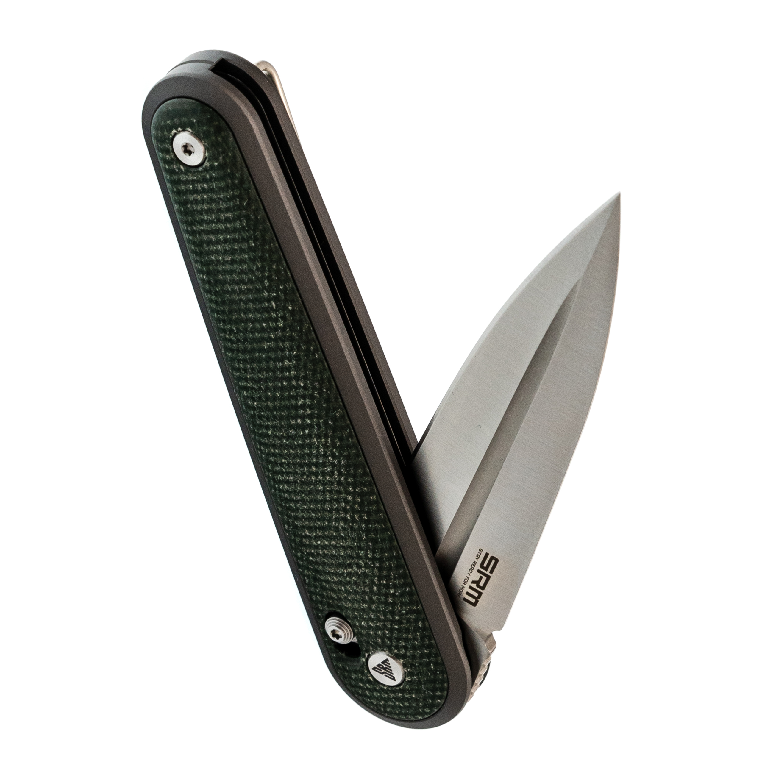 SRM Knives сделали Twin с оглядкой на тех, кто ценит в ноже не только функциональность, но и тактильные ощущения. Модель получилась сбалансированной: лёгкая, но не игрушечная; симметричная, но с характером. В закрытом виде рукоять полностью скрывает клинок - получается монолитная форма, которую удобно доставать из кармана и приятно держать в руке. Нож не привлекает лишнего внимания, но когда его открываешь, сразу чувствуется качественная сборка без люфтов и перекосов.