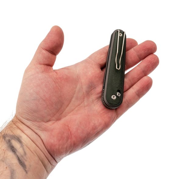 - Накладки из микарты. В отличие от гладкого металла или пластика, микарта даёт уверенный хват. Даже если руки в масле или после дождя, нож не выскальзывает. К тому же микарта не боится царапин - мелкие повреждения только добавляют текстуры.