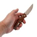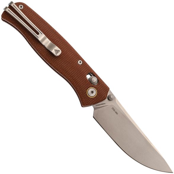 Клинок SRM Medal 255L выполнен из высококачественной стали 10Cr15CoMoV, которая является аналогом японской VG-10. Эта сталь сочетает в себе отличные показатели прочности и устойчивости к коррозии, что делает нож долговечным и надёжным в условиях повседневного использования. Она также хорошо держит заточку, что значительно снижает необходимость в частом обслуживании. Важным элементом модели является универсальная геометрия клинка с профилем Drop-Point и высокими прямыми спусками. Такой клинок удобно использовать для самых различных задач: от нарезки продуктов до открытия упаковок.