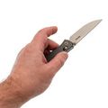 Клинок имеет профиль Drop-Point с прямыми высокими спусками, что обеспечивает универсальность: от разрезания упаковки и продуктов до точных точечных работ. Конструкция позволяет легко поддерживать заточку, а шпенёк с обеих сторон обеспечивает комфортное открытие как для правшей, так и для левшей. Система Anti-Loosening Pivot Works сохраняет ход осевого узла стабильным при частом открытии и закрытии. Отсутствие избыточных декоративных элементов подчёркивает функциональность.