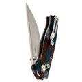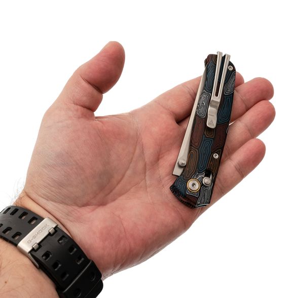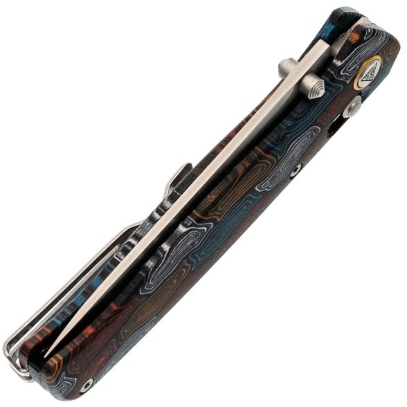 Рукоять ножа представляет собой уникальное технологическое решение: стальной интегральный лайнер служит основой для разноцветных накладок из слоеного G10. Такое исполнение не только придает ножу яркий и запоминающийся внешний вид, но и обеспечивает надежную и прочную конструкцию. Рукоять удобно лежит в руке, а замок Ambi-Lock позволяет удобно открывать нож как правой, так и левой рукой. Клипса Ambi-Clip может быть установлена с любой стороны, что удобно для левшей и правшей. Приятным бонусом является наличие темлячной бонки, позволяющей персонализировать нож с помощью темляка.