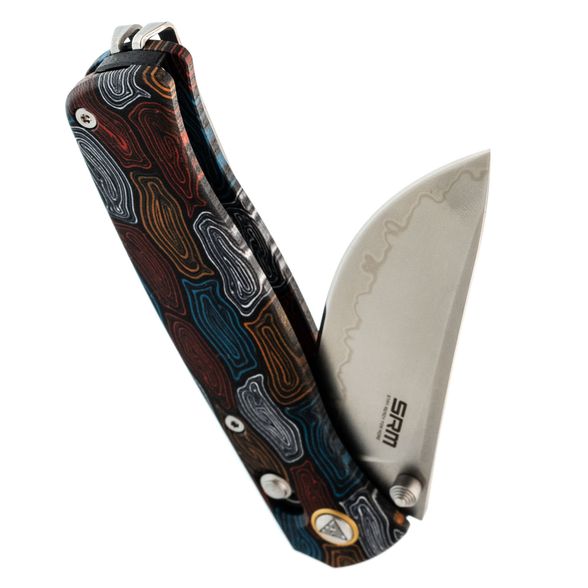 Клинок SRM Medal изготовлен из ламината, состоящего из высокоуглеродистой стали 140Cr в качестве сердечника. Такое решение позволяет достичь впечатляющей стойкости заточки, сравнимой с показателями порошковой стали S35VN, как утверждает производитель. Обкладки ламината придают ножу не только привлекательный внешний вид, но и повышают коррозионную стойкость. Форма клинка универсальна и имеет высокие прямые спуски, что обеспечивает эффективный и точный рез.