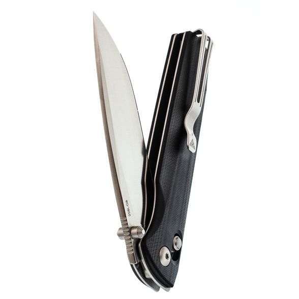 Нож сбалансирован идеально - клинок не слишком широкий, не слишком узкий. Благодаря универсальной форме Drop-Point и прямым спускам, этот нож обеспечивает отличные режущие характеристики. Применяемая сталь D2 обеспечивает длительное сохранение остроты и добавляет резу агрессивности. Этот нож идеально подходит как для ежедневного использования, так и для выполнения более сложных задач в природе или в походе. Следует отметить, что размещение шпенёка было продуманным и тщательно обдуманным. Его расположение не только не мешает в работе, но также способствует удобному и легкому извлечению ножа без лишних усилий.Лезвие ножа имеет закругленную форму, что придает ему не только приятное тактильное ощущение, но и делает его элегантным и изысканным внешне.
