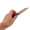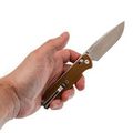 Клинок с геометрией Drop-Point - классическое решение для повседневного применения. Благодаря прямым спускам нож уверенно режет и легко контролируется в работе. Механизм Ambi-Lock обеспечивает быструю и безопасную фиксацию клинка. Открытие - через двусторонний шпенёк или инерционно одним движением руки.