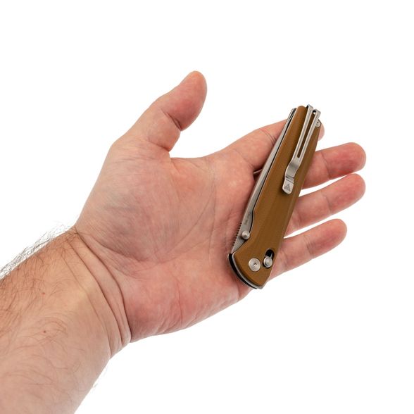 Рукоять из G10 выполнена с учётом анатомии ладони, что делает работу с ножом комфортной даже в течение длительного времени. Интегральный моно лайнер повышает прочность конструкции и упрощает чистку. Клипса Ambi-Clip легко переставляется без инструмента и не повреждает ткань кармана, не мешая при удержании ножа.