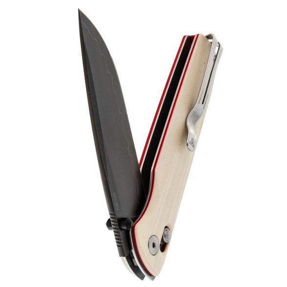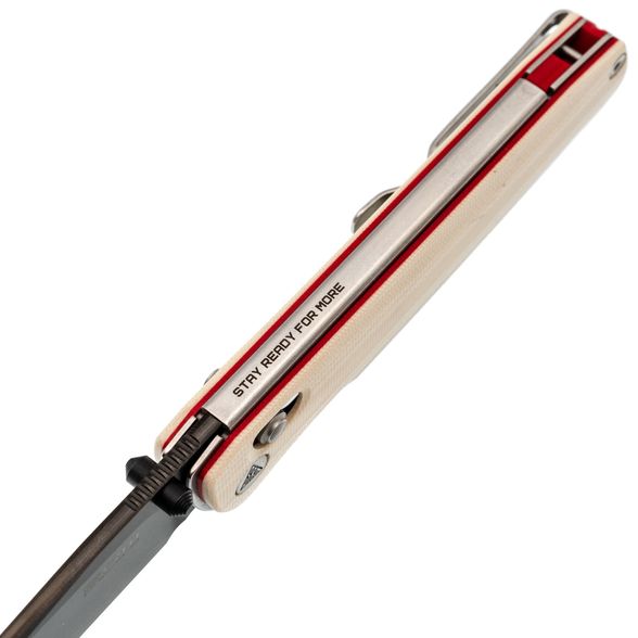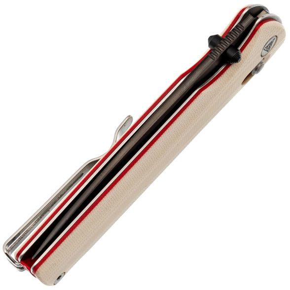 Рукоять из G10 сочетает простую форму и выверенную эргономику. Моно лайнер служит несущей частью конструкции, обеспечивая целостность и устойчивость к нагрузкам. Съёмная клипса Ambi-Clip позволяет легко менять положение без использования отвёртки. Она не оставляет следов на ткани и не мешает в работе.