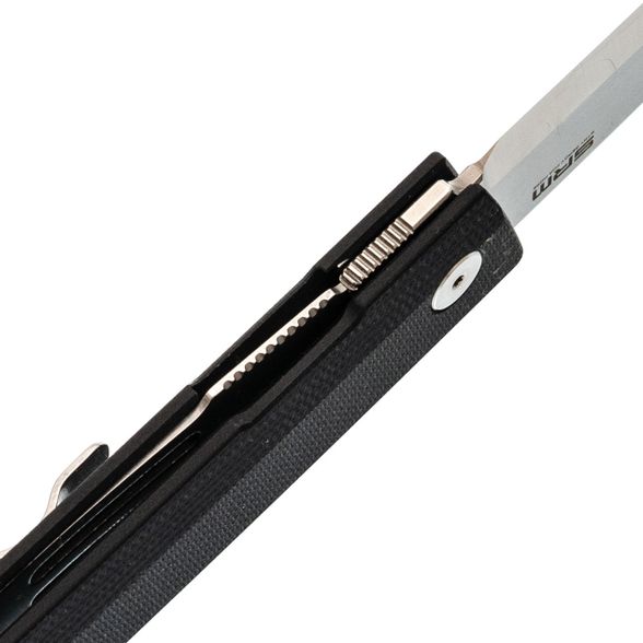 Рукоять: G10. Термореактивный композит на основе стеклоткани, известный своей прочностью, устойчивостью к влаге и температурным перепадам. Материал обеспечивает уверенное сцепление даже в мокрой руке.