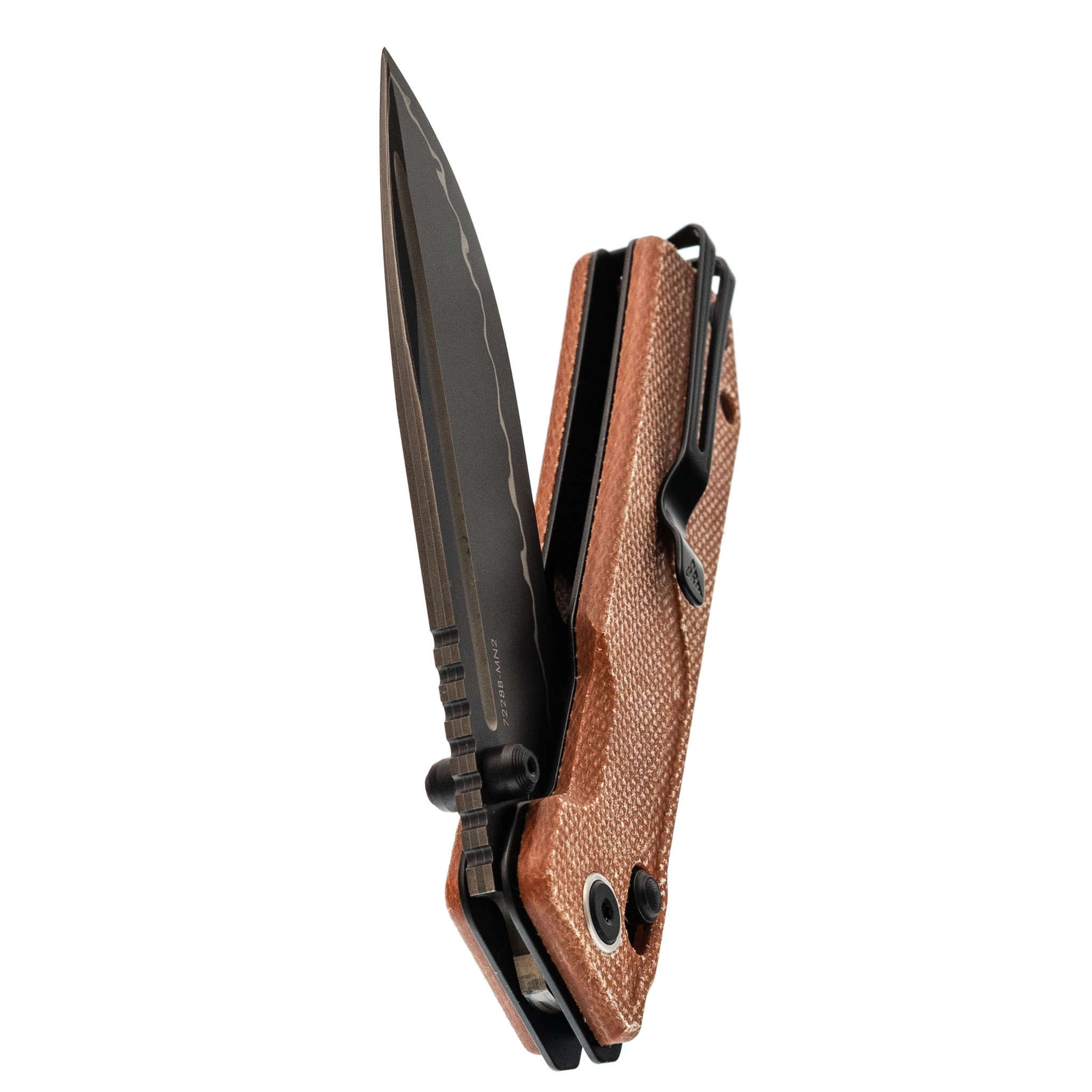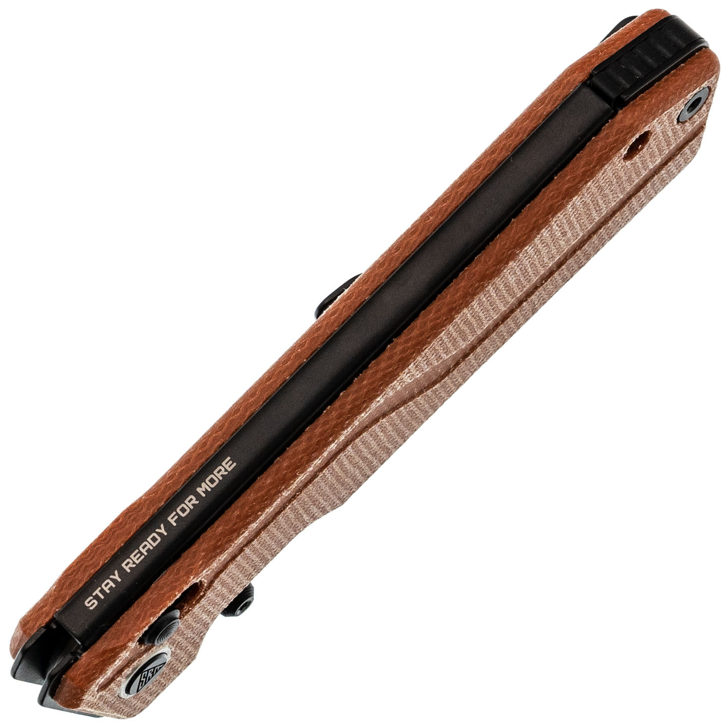 - Накладки: коричневая микарта - многослойный композитный материал, устойчивый к влаге и перепадам температуры. Обладает приятной текстурой и обеспечивает надежный хват.