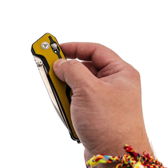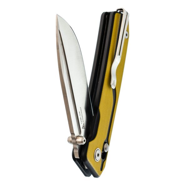 Клинок обладает хорошей режущей геометрией и изготовлен из высококачественной стали 10Cr15CoMoV, аналога японской VG-10. Такой сплав обеспечивает отличное сопротивление коррозии и легкость заточки. Прямые спуски вместе с универсальным профиль Drop-Point делают инструмент пригодным для различных задач.