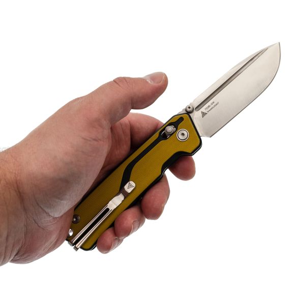 Рукоять с небольшим изгибом даёт комфорт и удобство при использовании. Надежные материалы, такие как сталь и стеклотекстолит G10, придают ей прочность и устойчивость к неблагоприятным условиям окружающего мира.