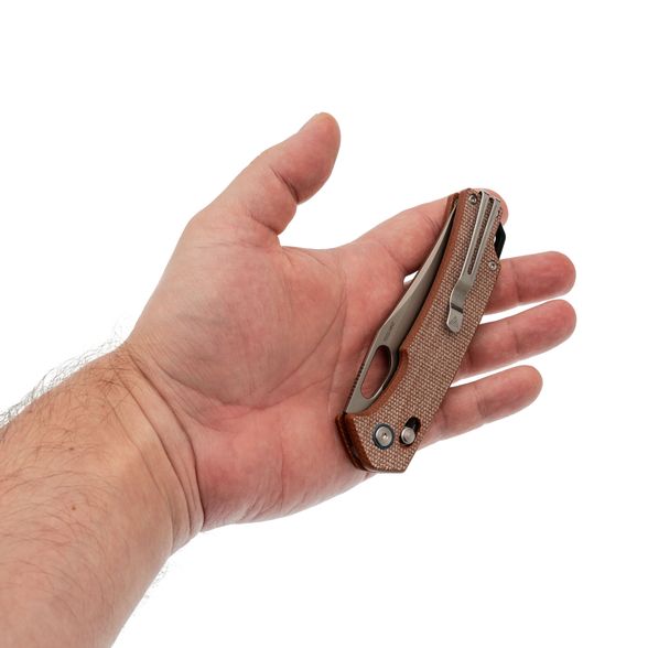 Накладки из микарты добавляют не только надёжности, но и особого тактильного ощущения - она напоминает ткань, но при этом крайне устойчива к износу. С течением времени микарта приобретает характерный налёт индивидуальности, а при намокании становится ещё более цепкой.