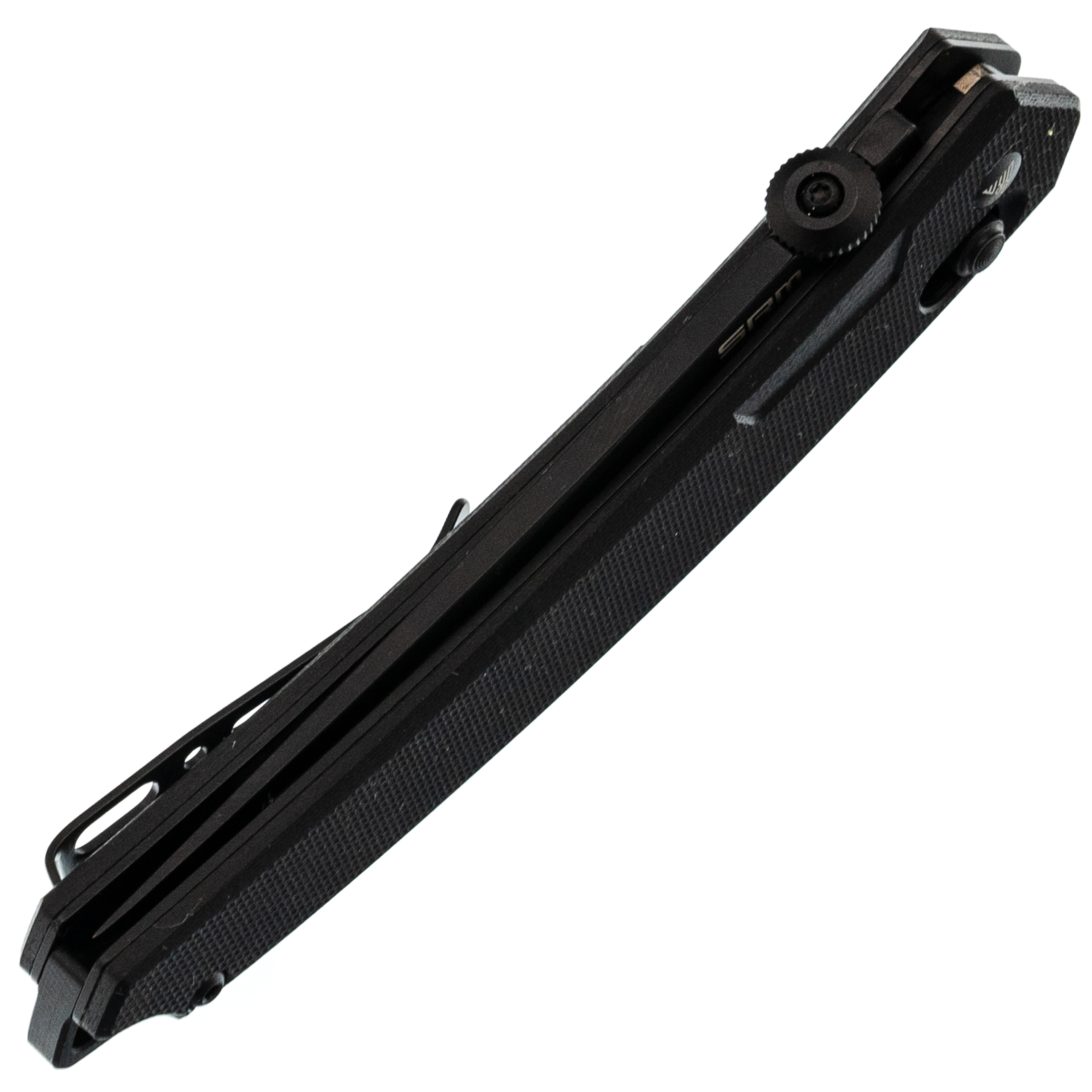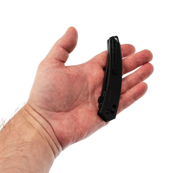 Изогнутая рукоять комфортно ложится в ладонь и помогает удерживать нож при длительной работе. Замок Ambi-Lock, по конструкции близкий к Axis-Lock, работает плавно и надёжно, позволяет управлять ножом одной рукой. Карманная клипса обеспечивает глубокую и аккуратную посадку в кармане, а темлячное отверстие даёт возможность добавить шнур под свои привычки.