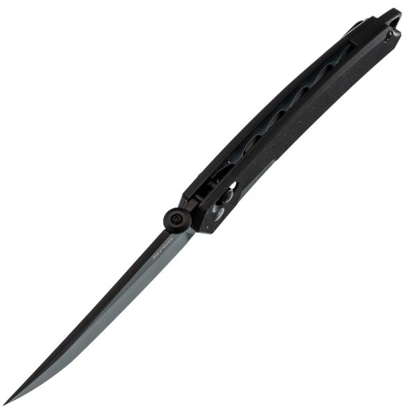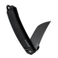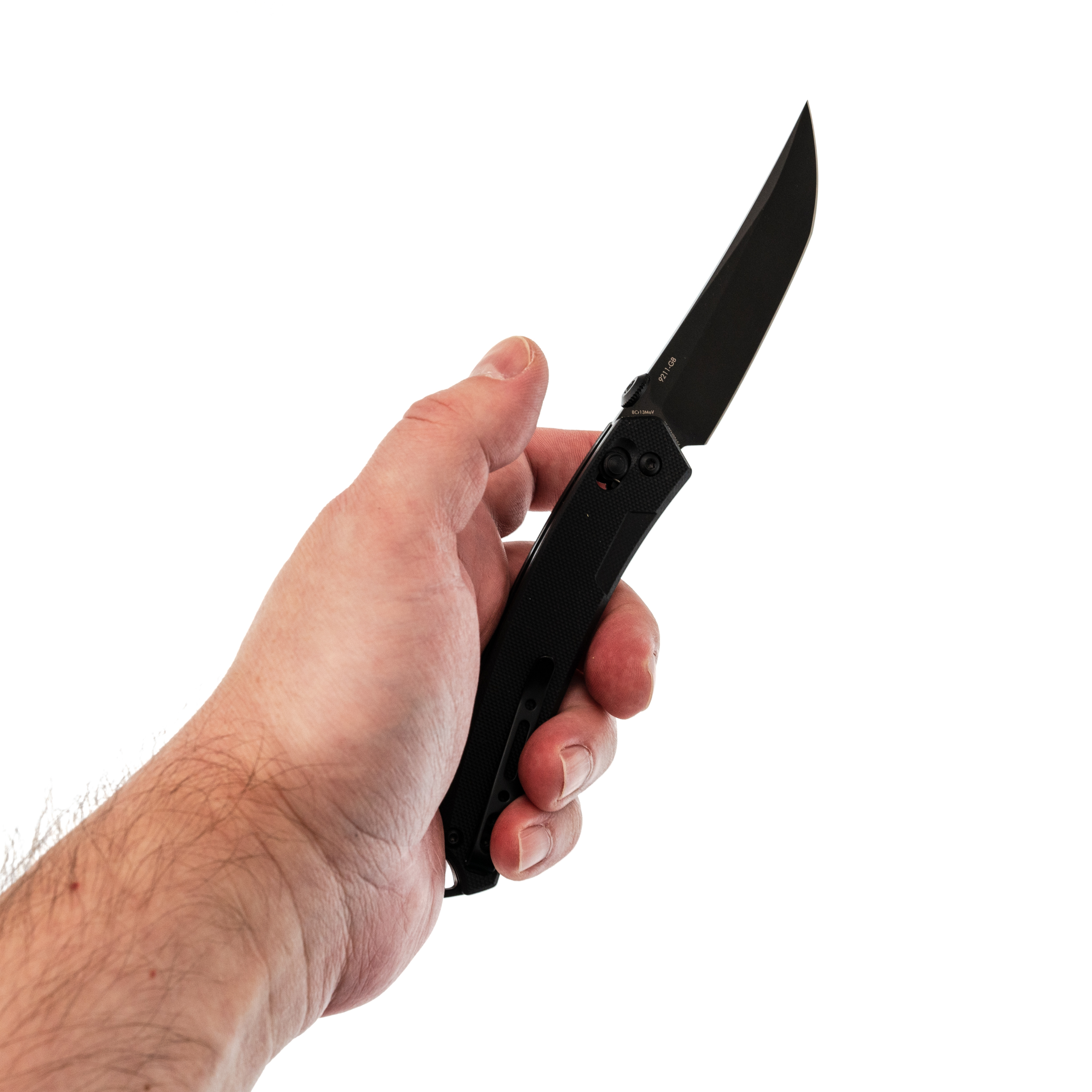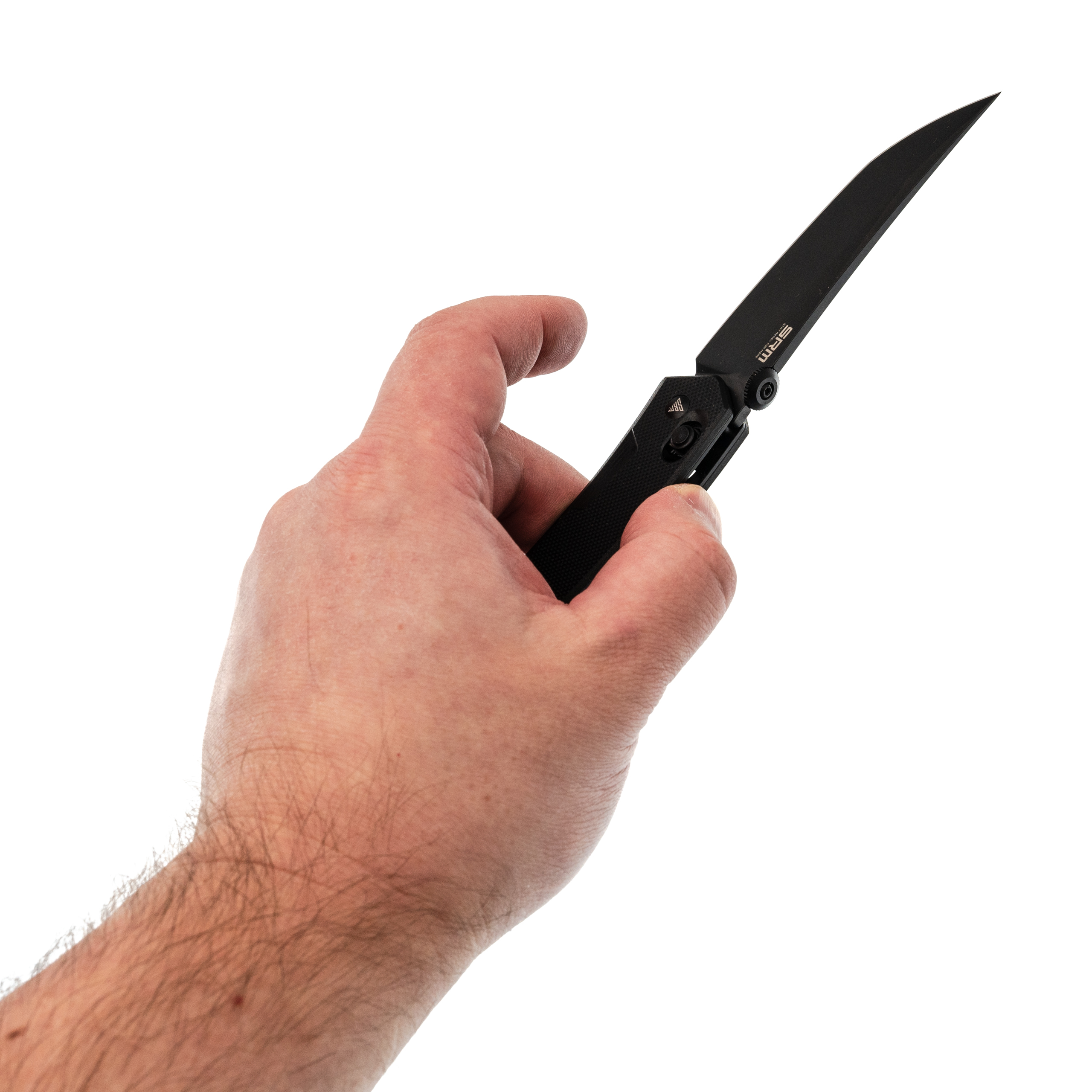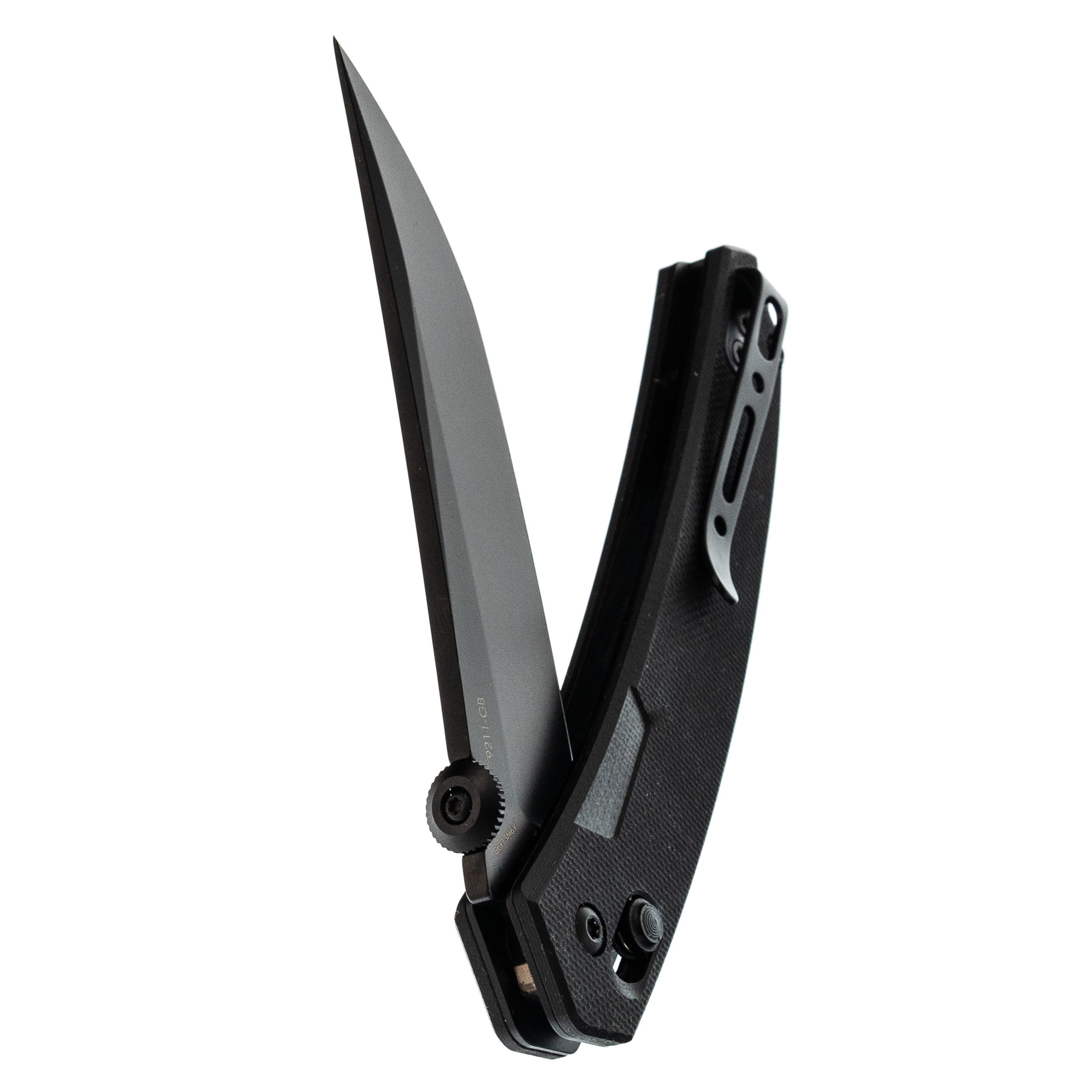 Узкий клинок с профилем tanto рассчитан на точные работы и уверенный контроль кончика. Высокие прямые спуски обеспечивают аккуратный и чистый рез по упаковке, продуктам и другим бытовым материалам. Финиш клинка практичный: меньше бликов и следов от использования. Открывается нож за шайбу на обухе или инерционно - механизм позволяет сделать это быстро и без лишних усилий.