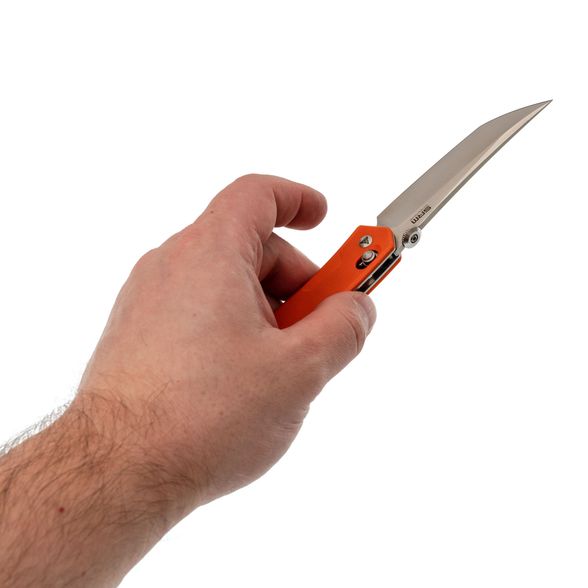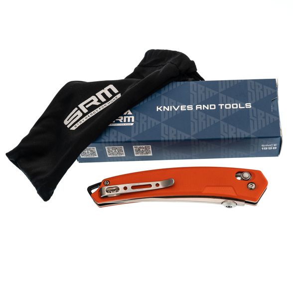 Складной нож SRM 9211-GW, рукоять G10 - это оригинальный сплав джентльменского и тактического ножа. Казалось бы, сложно совместить эти сущности, но дизайнерам бренда это удалось. Хищность и элегантность обводов клинка дополнена черным матовым покрытием. Накладки рукояти из тактического стеклотекстолита окрашена в темный оттенок хаки, что намекает на возможность тактического использования. Нож удобно сидит в руке, уверенно строгает и легко режет материалы различной плотности. Для удобной транспортировки используется надежная стальная клипса.