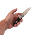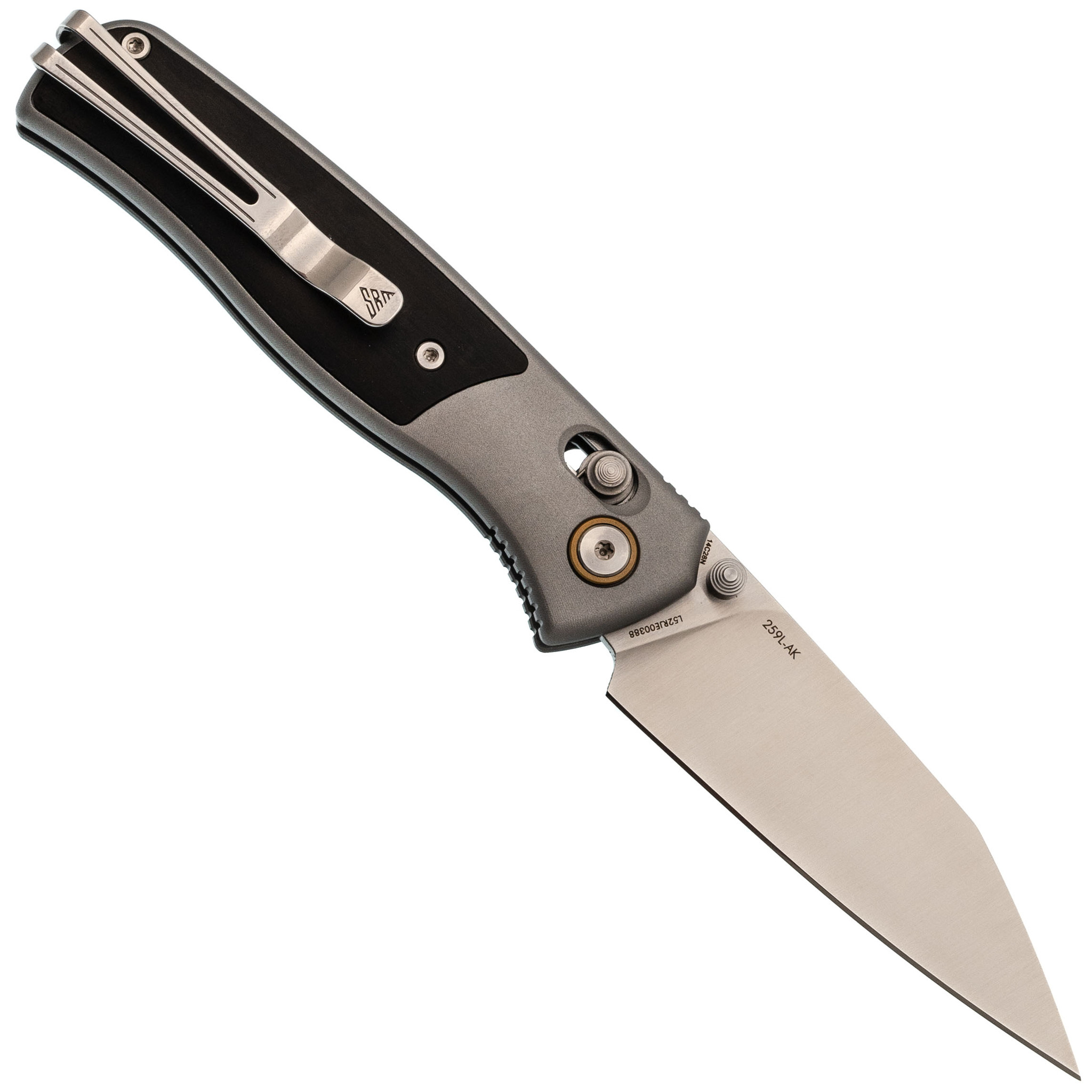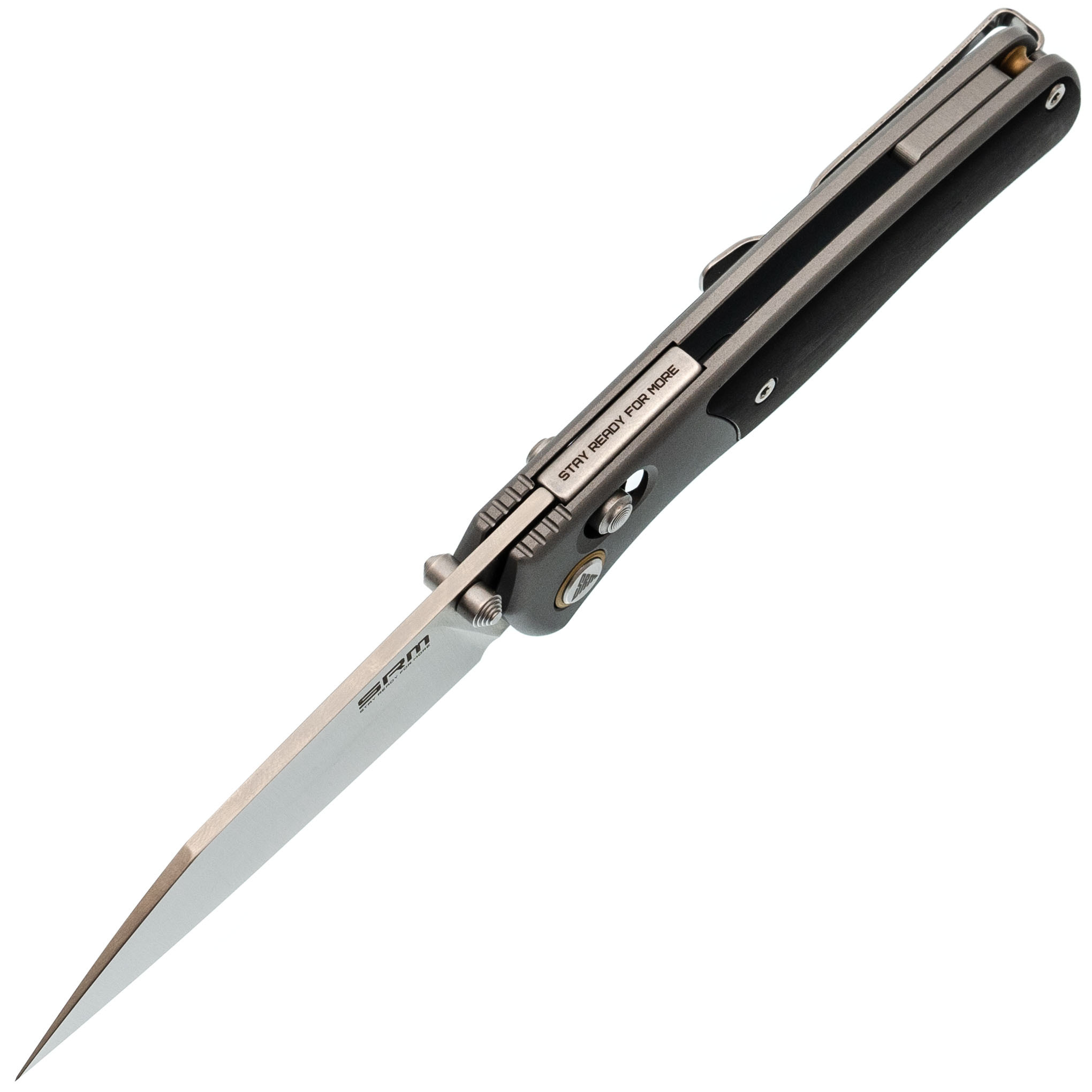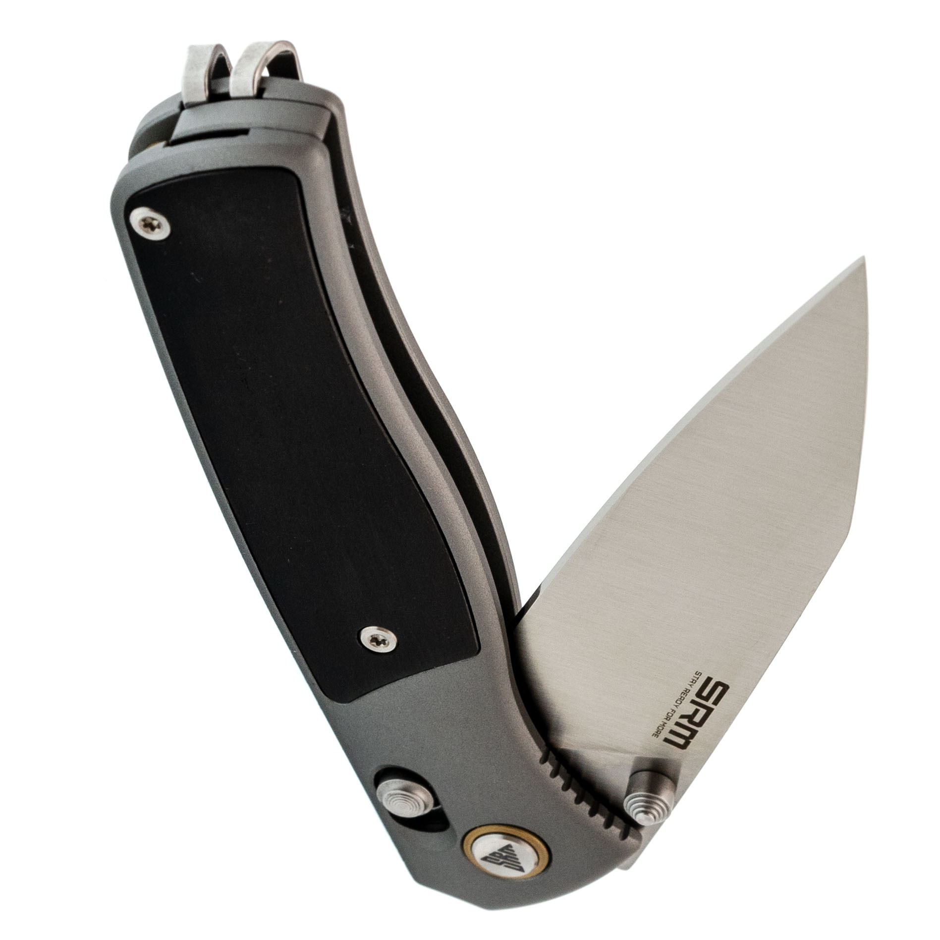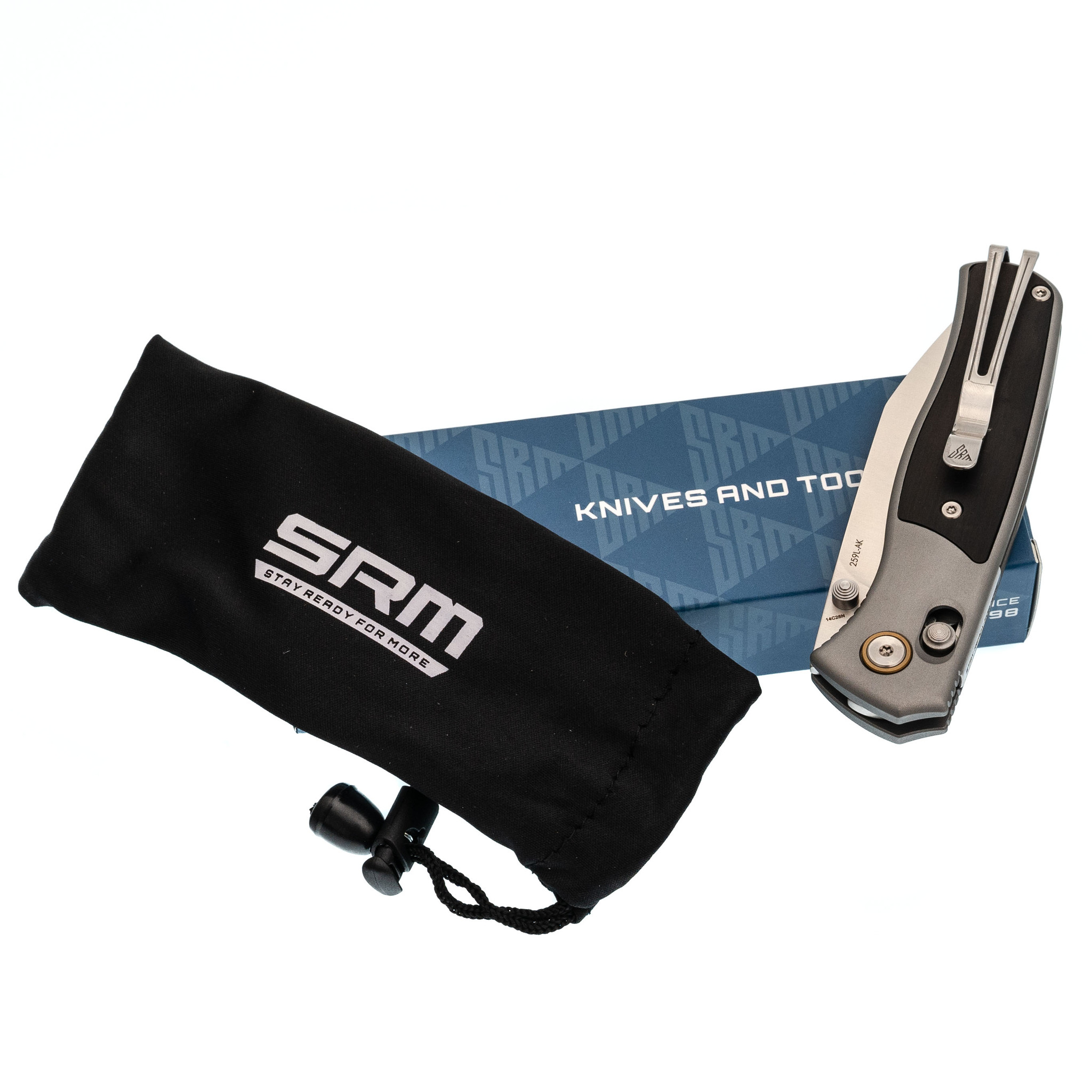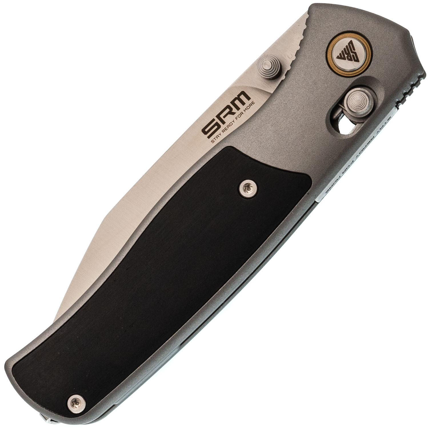 Рукоять с декоративной вставкой из эбенового дерева имеет эргономичную форму, которая идеально ложится в руку, обеспечивая удобство при долгом использовании. Это сочетание практичности и элегантности делает складной нож Medal от SRM по-настоящему универсальным инструментом для повседневной жизни.