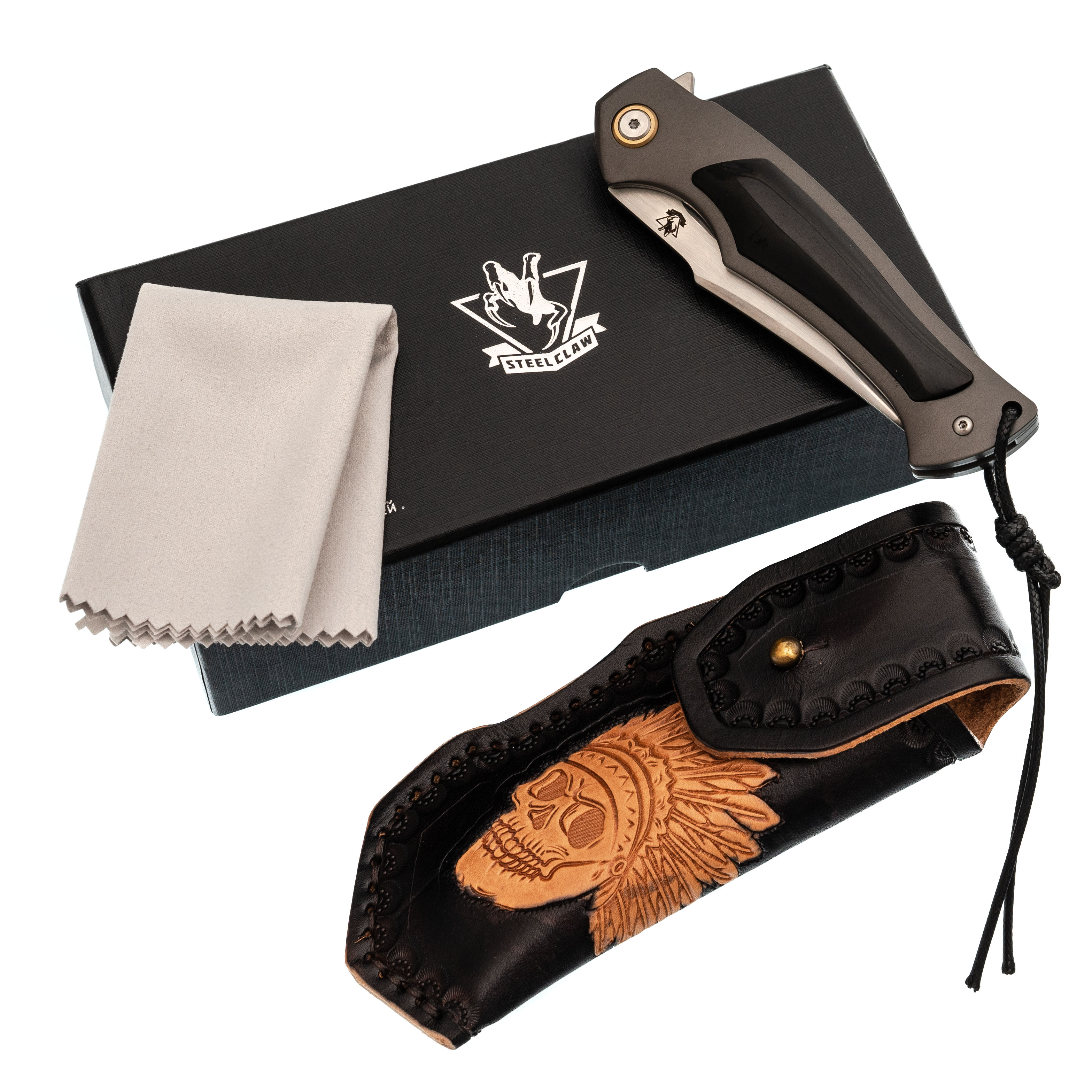 Steelclaw Алыча - складной нож среднего размера с прямой, рабочей логикой: взял, открыл, сделал дело и убрал обратно. Дизайн спокойный, но с характером - в нём угадывается классическая линия Clip-Point, а в деталях есть аккуратная изюминка в виде вставок из рога. Нож создан под повседневные задачи: резать, подправлять, вскрывать упаковку, подгонять мелочи по месту. Открывание флиппером - быстрое и понятное, без привыкания.