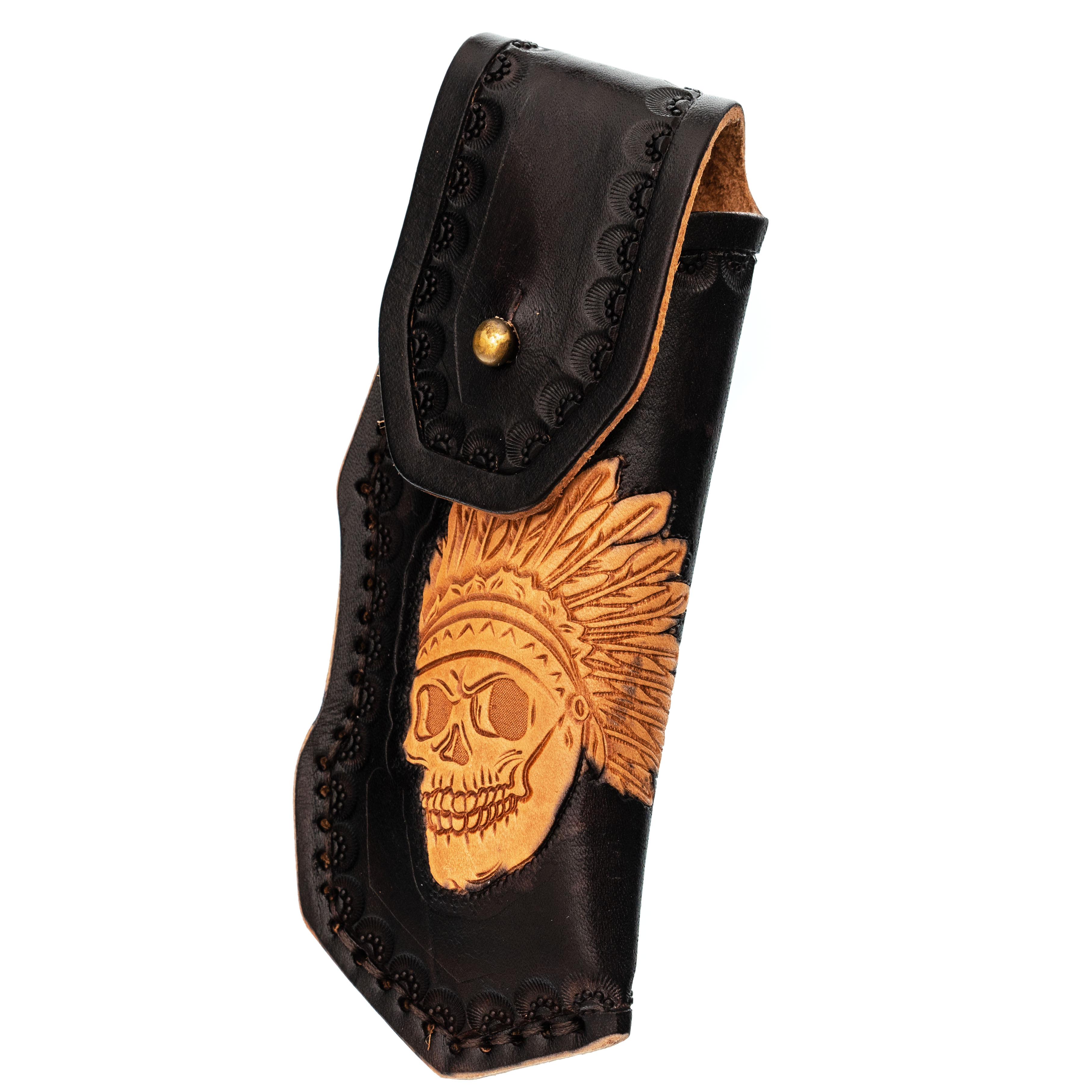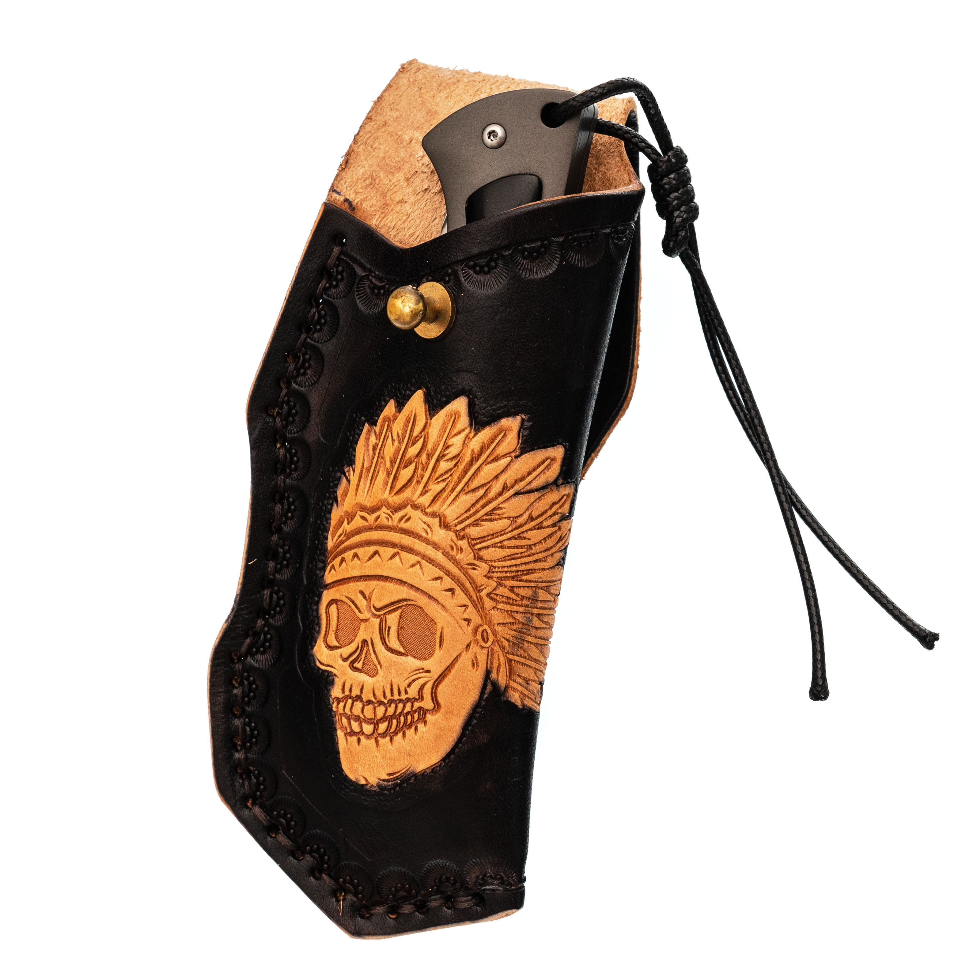 Клипсы здесь нет, и это осознанная история: Алыча комплектуется кожаным чехлом для ношения на поясе. Чехол держит нож надёжно, а клапан защищает от случайного выпадения и фиксируется на пуклю - удобно, когда важно, чтобы всё было на месте и без сюрпризов при движении.