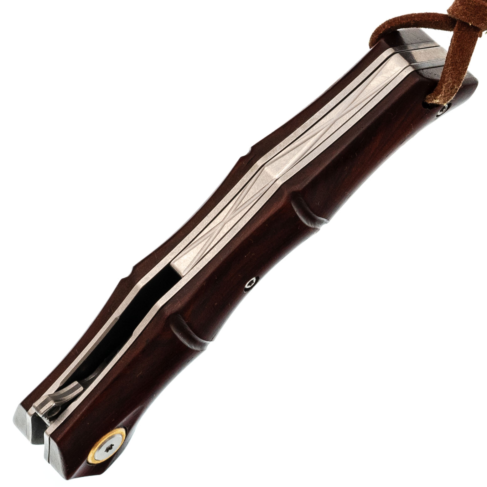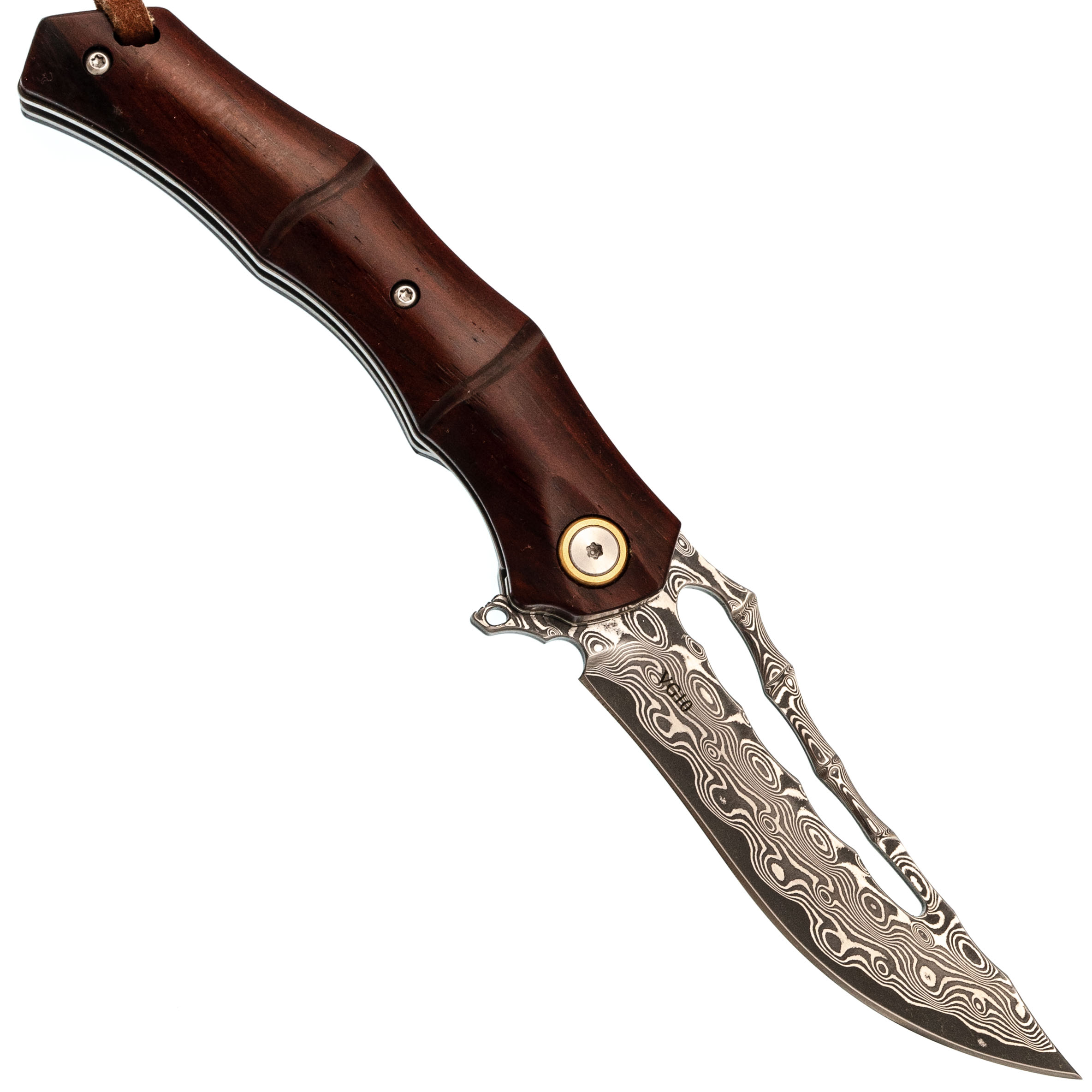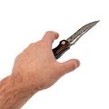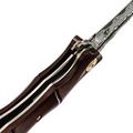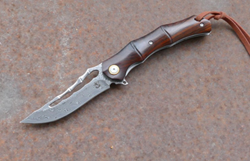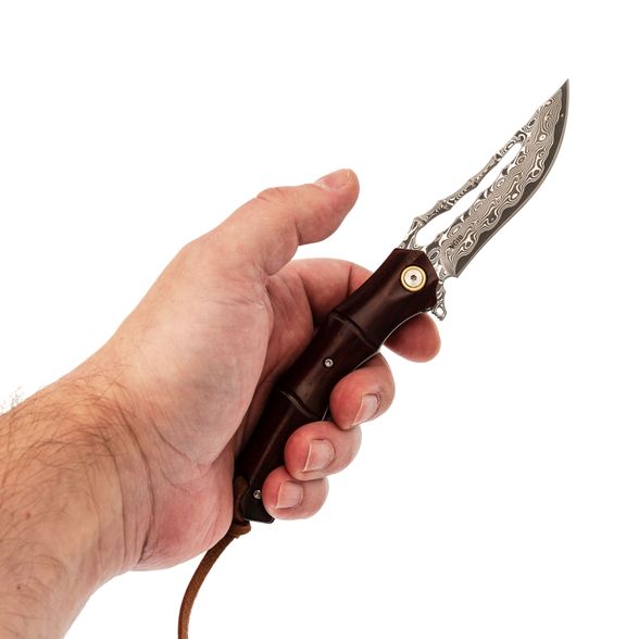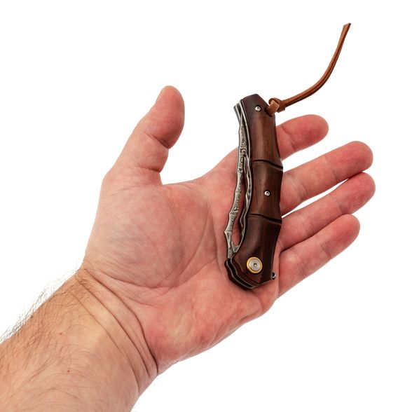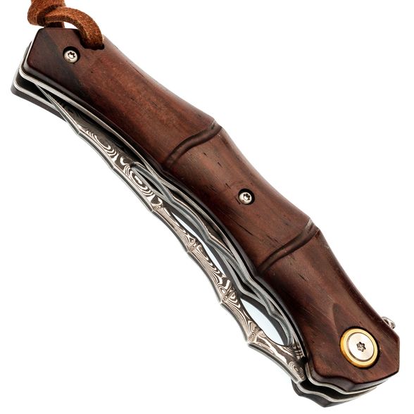 Форма рукояти отсылает к росткам бамбука: плавные утолщения и сужения создают естественный хват, без ощущения углов и пустот в ладони. Палисандр тёплый и живой, поэтому нож приятно держать долгое время. За фиксацию клинка отвечает замок Liner-Lock - надёжный, простой и хорошо знакомый тем, кто пользуется складными ножами каждый день. Здесь всё работает тихо и уверенно, без лишних движений.
