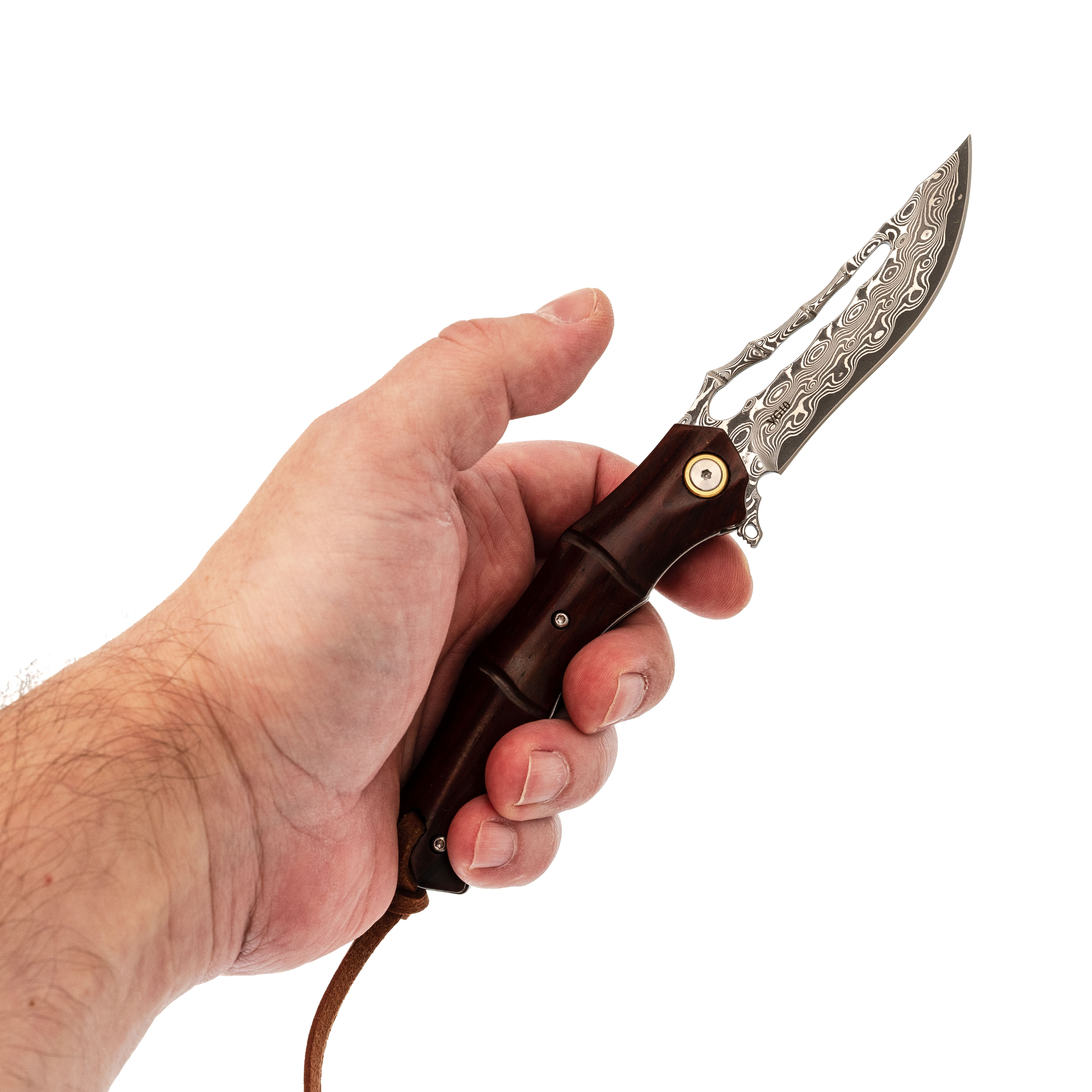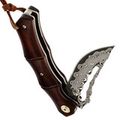 - Ламинированный дамаск с сердечником VG-10 - внешний слой придаёт клинку устойчивость и выразительную фактуру, а сердцевина из VG-10 отвечает за стабильный рез и хорошее удержание остроты. Сталь не требует сложного ухода и спокойно переносит повседневные нагрузки.