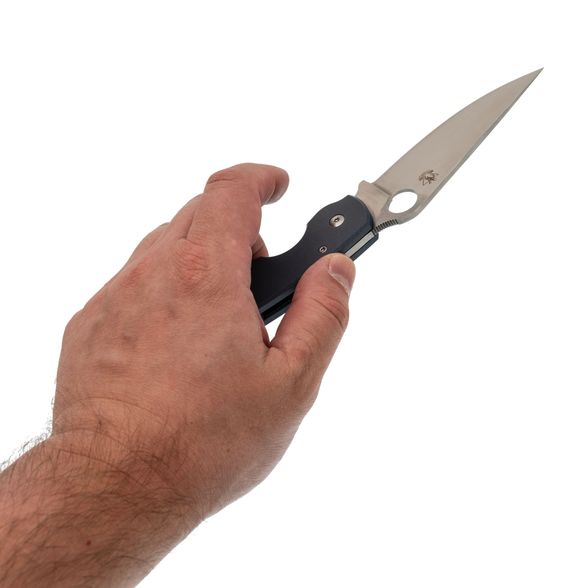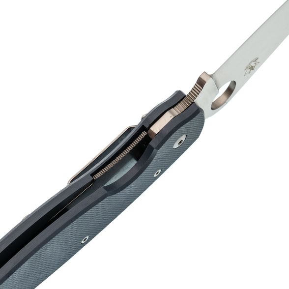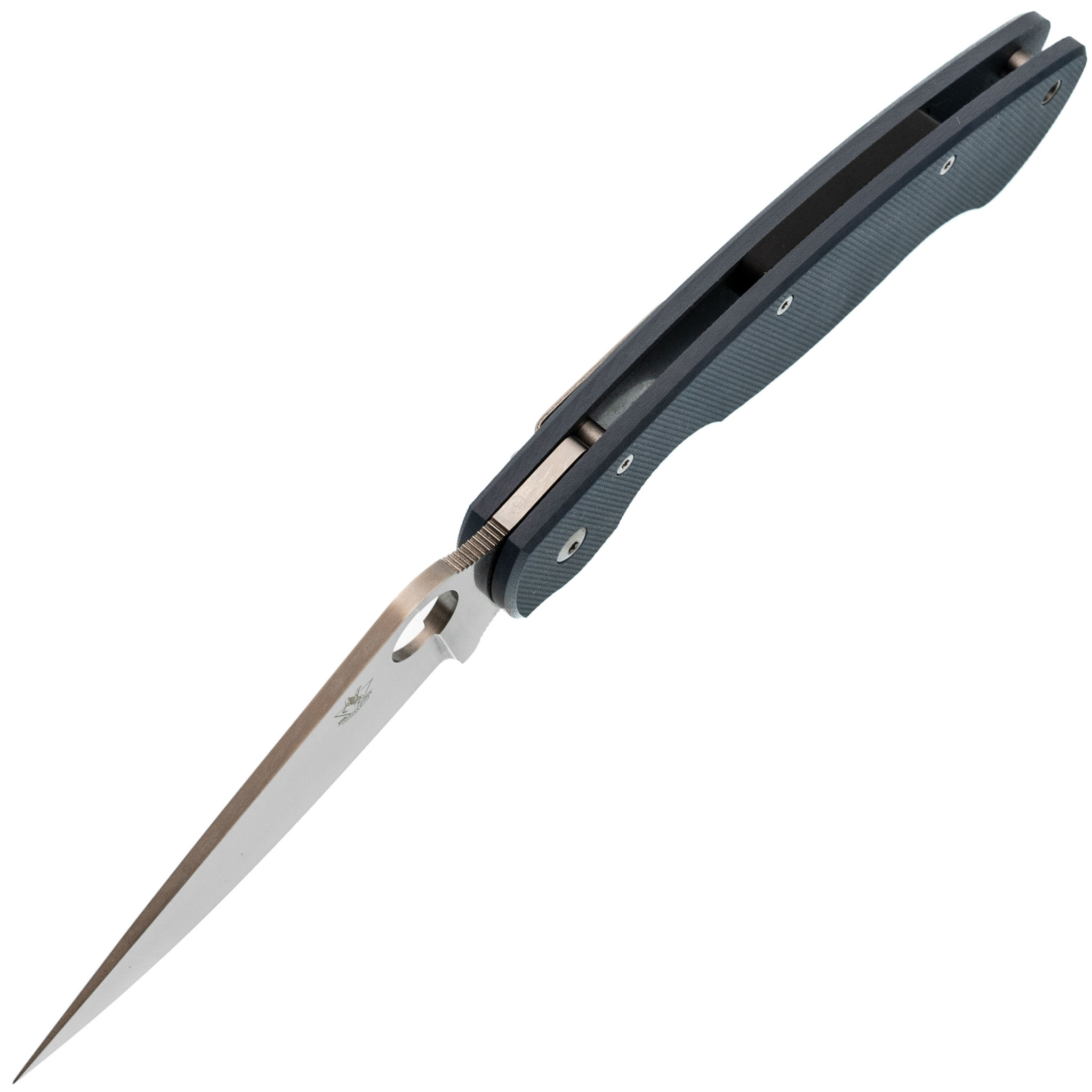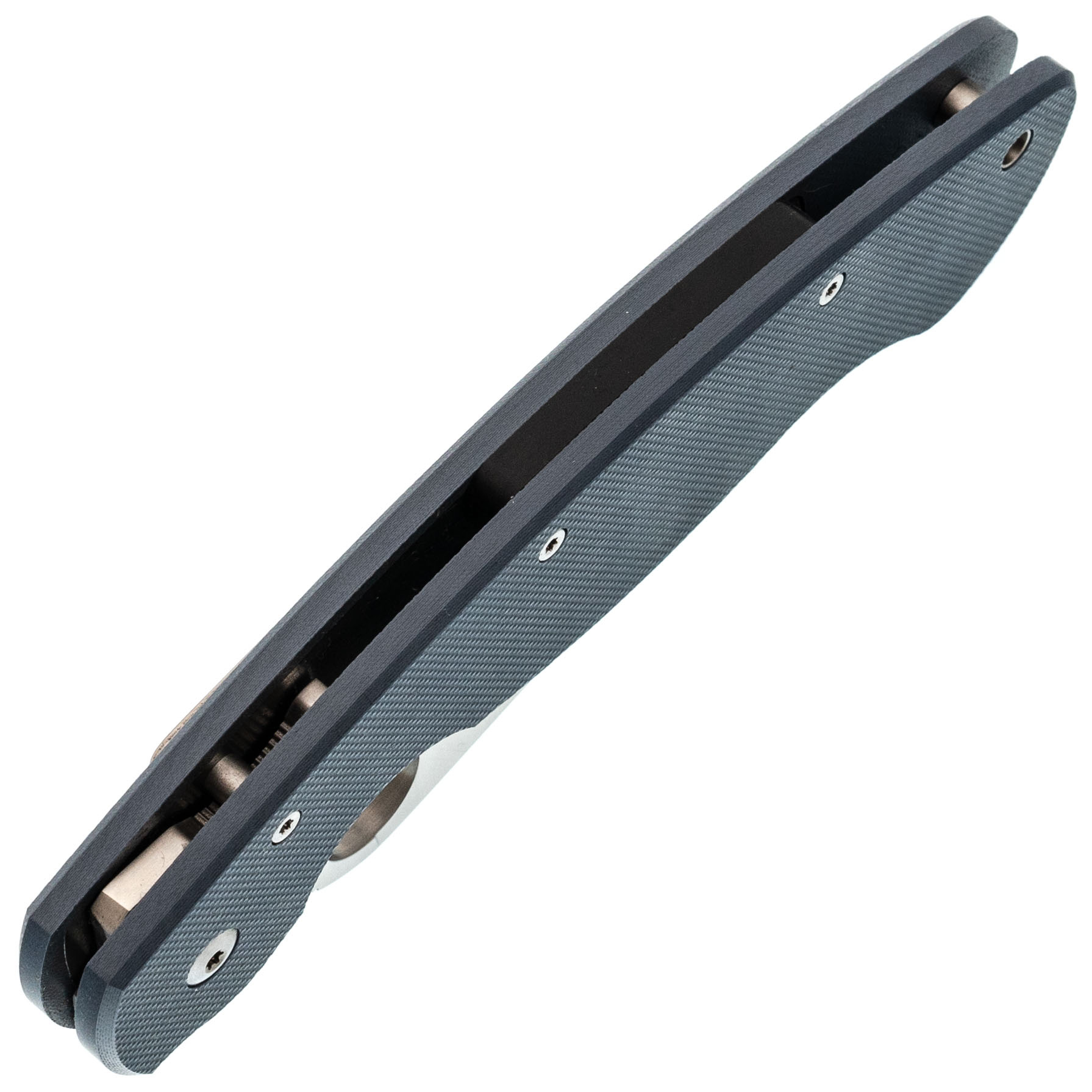 Клинок имеет форму тройного клина: он плавно сужается к деликатному кончику, который подойдёт для аккуратных проколов. Прямые спуски от обуха обеспечивают чистый и уверенный рез, а открывается клинок при помощи круглого отверстия - удобно как левой, так и правой рукой, даже в перчатках. В осевом узле стоят шайбы, которые меньше боятся пыли и грязи.