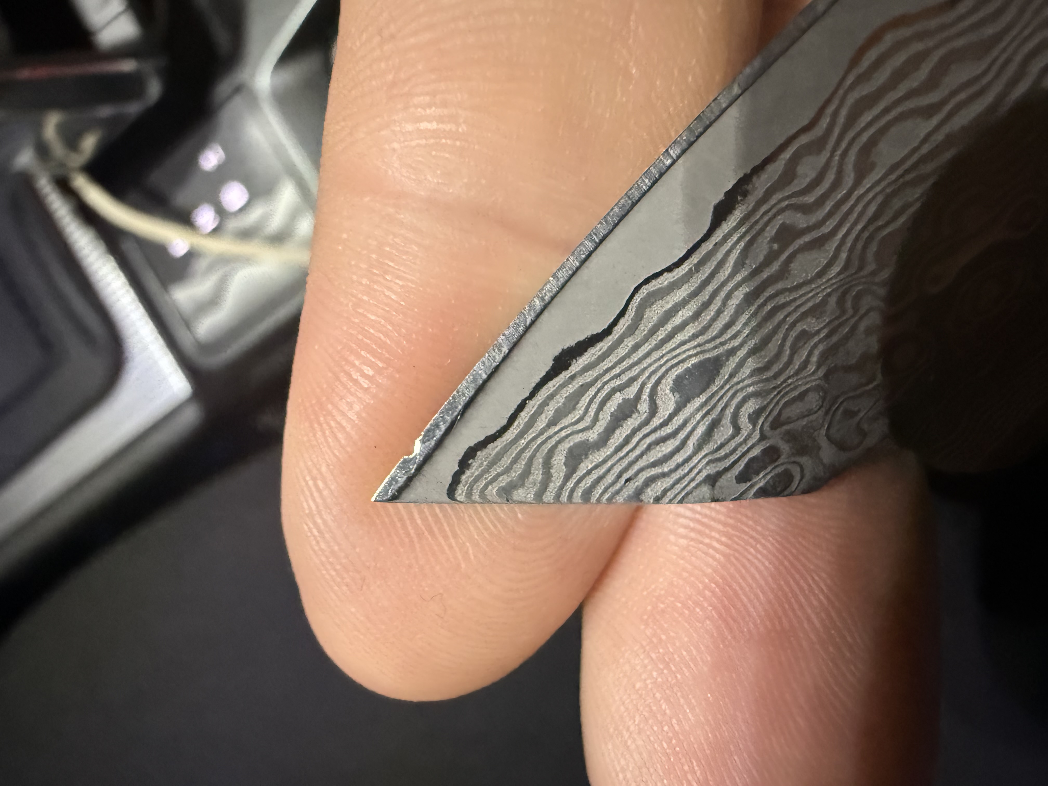 Ламинат дамаска с сердечником VG-10 - красивый рисунок слоёв снаружи плюс предсказуемая рабочая сталь внутри. Сердечник из VG-10 хорошо держит заточку и при этом нормально правится, а внешние слои добавляют вязкости и создают тот самый живой, теплый внешний вид.