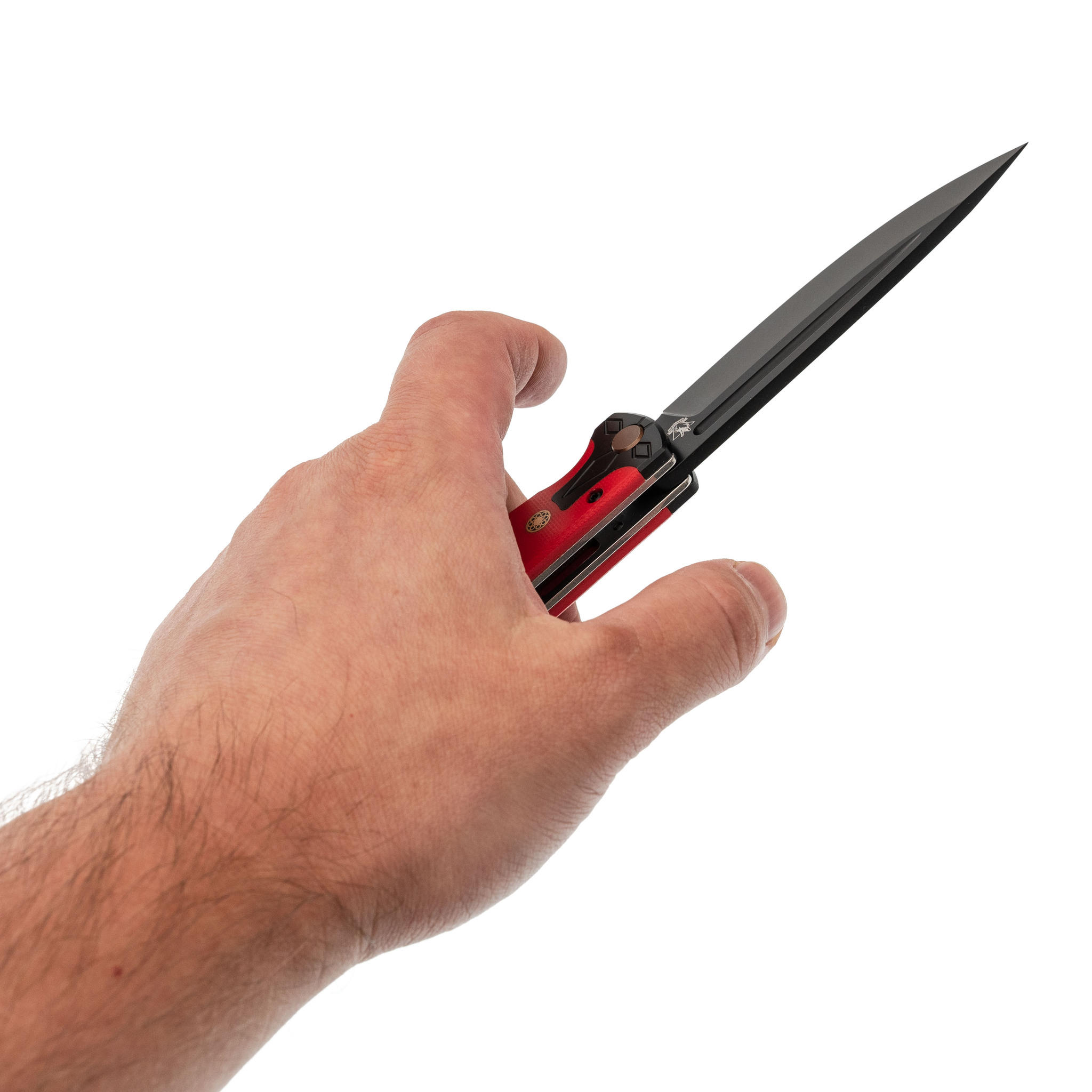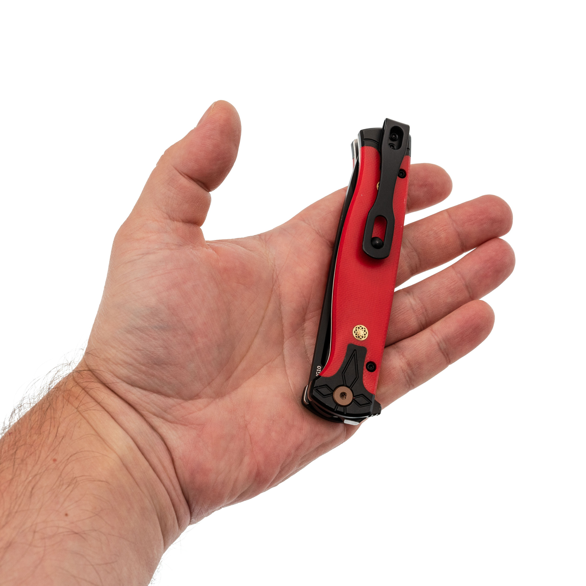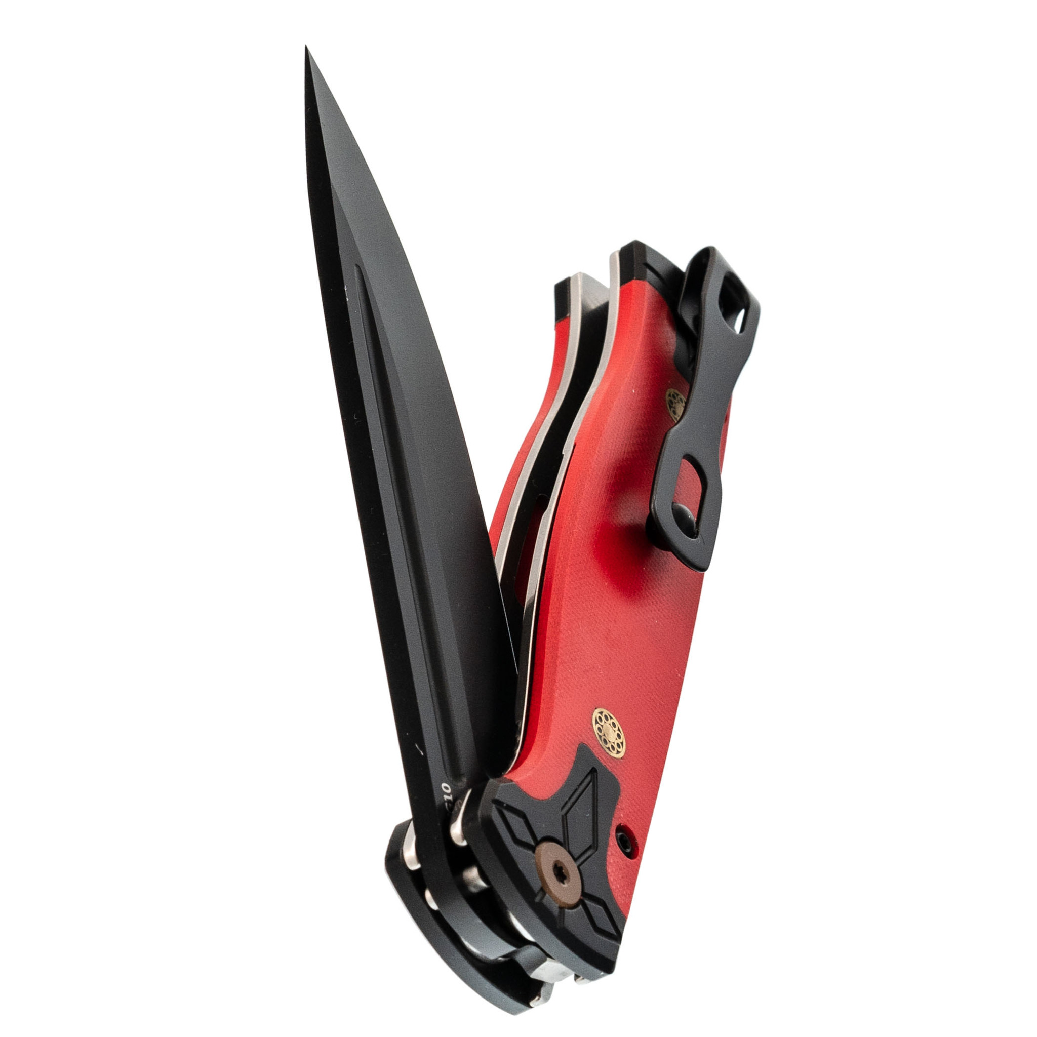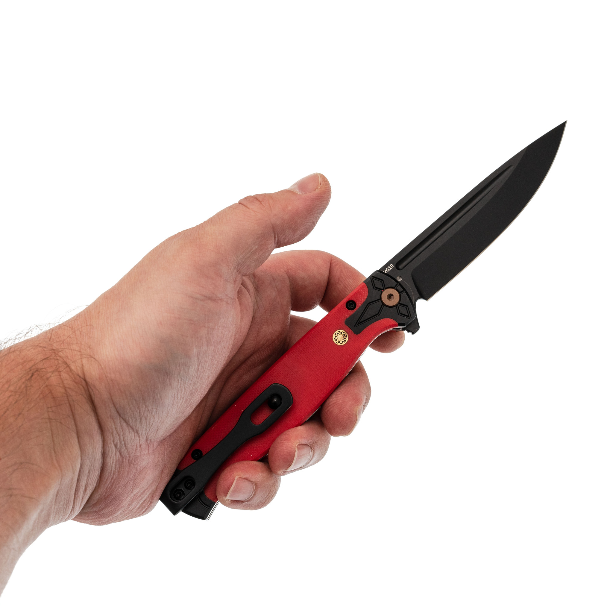 Рукоять из красного G10 сочетает прочность и визуальную выразительность. Продуманная форма корпуса и цепкая текстура накладок обеспечивают уверенное удержание даже в сложных условиях. Благодаря удачному сочетанию материалов и эргономики Хорс‑02 Black остается надежным и удобным инструментом для регулярного применения, сохраняя фирменный баланс Steelclaw между доступностью и качеством.